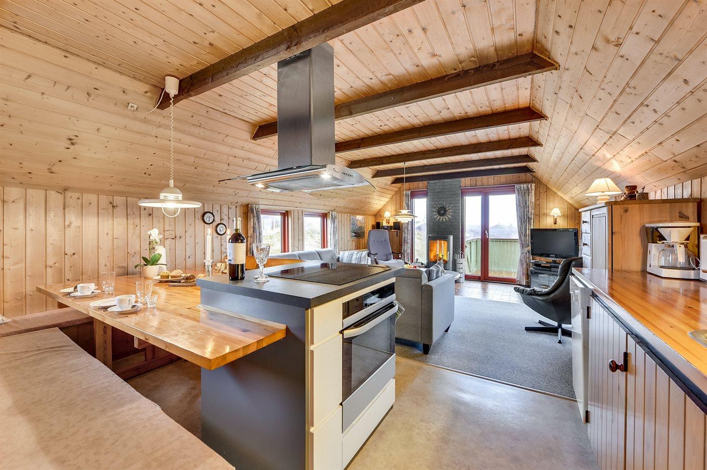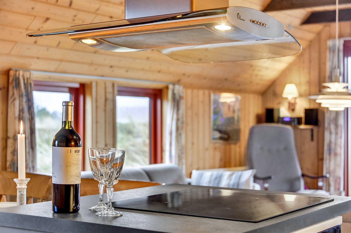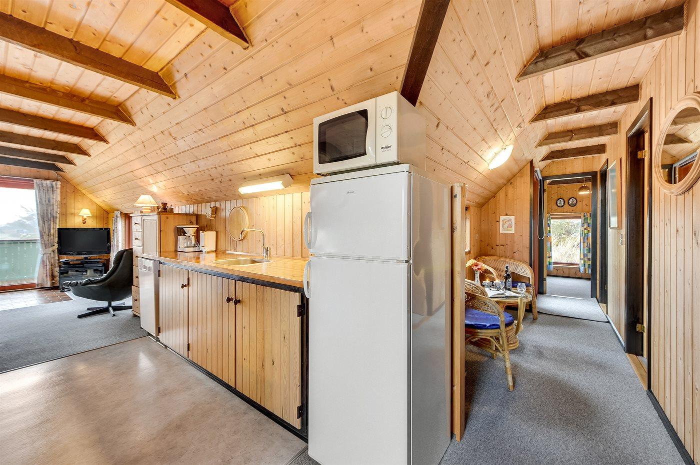 Die Küche ist mit Kühlschrank ausgestattet. Außerdem gibt es 4 Induktions-Kochzonen, Umluftofen, Mikrowelle sowie Geschirrspüler.