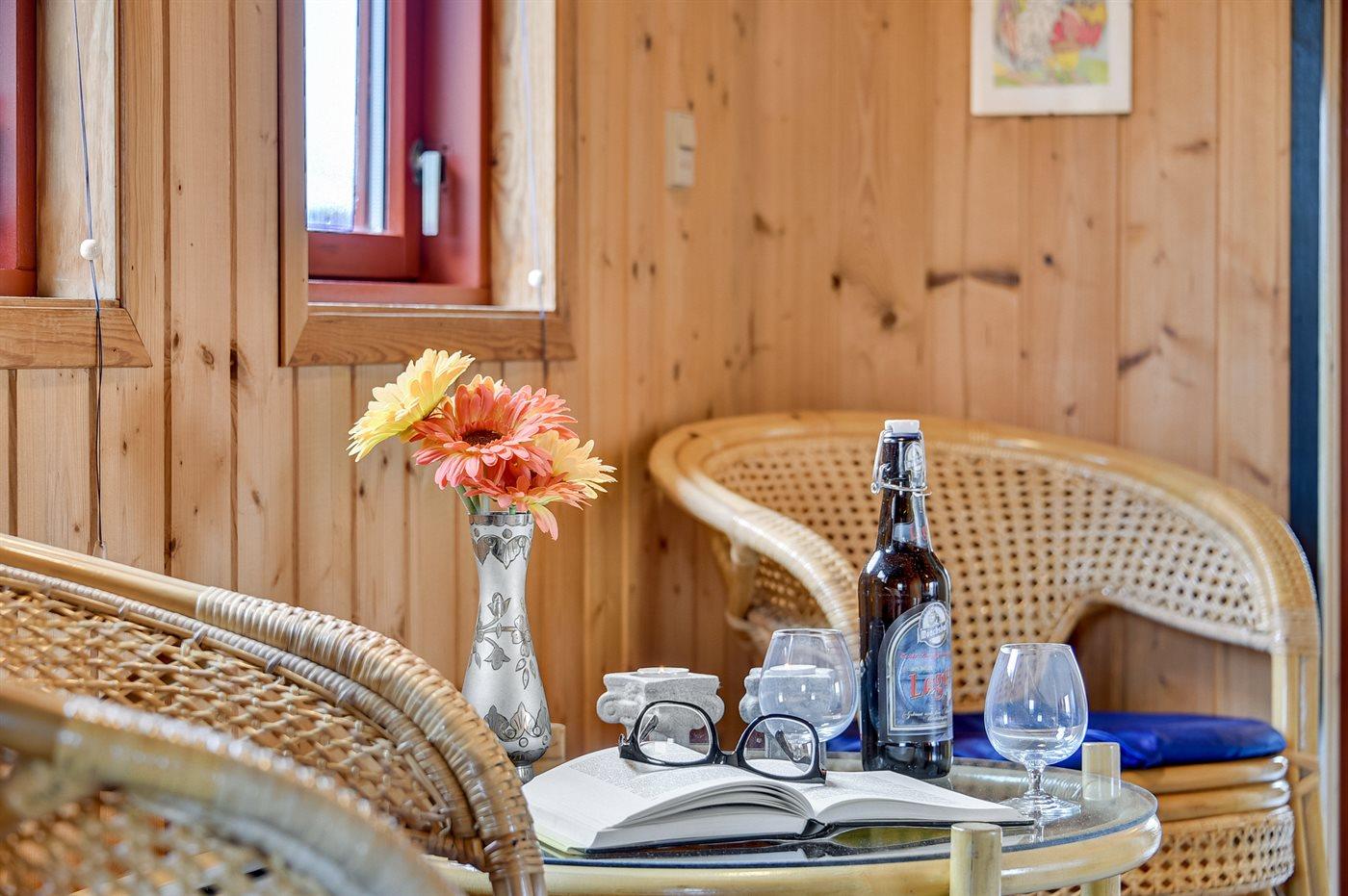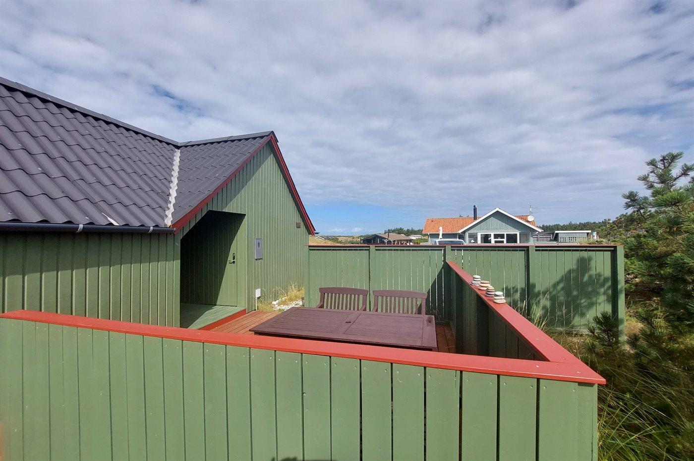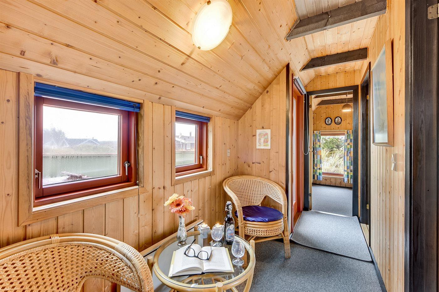 Ein gemütliches Ferienhaus älteren Jahrgangs, mit einer schönen geschlossenen Terrasse, Ausblick auf die Dünen und kurzem Abstand zum Wasser.