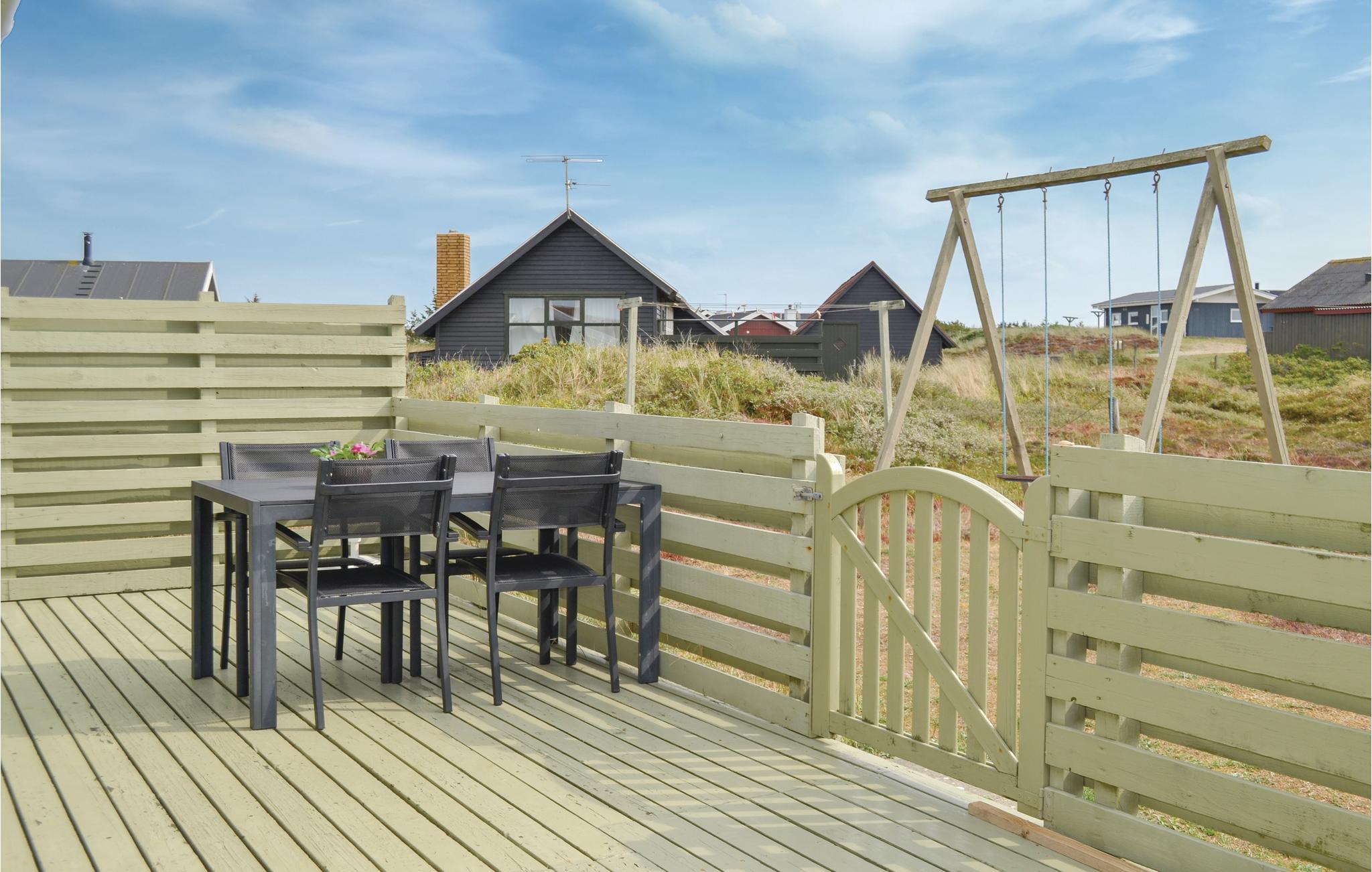 Ein traditionelles dänisches Ferienhaus, das zu einem schönen Urlaub an der Nordsee einlädt. Es liegt auf einem großen Naturgrundstück im beliebten Feriengebiet Bjerregård, nur 300 vom Strand entfernt. Hier sind vierbeinige Familienmitglieder willkommen, bis zu zwei Haustiere sind erlaubt. Kinder können sich auf Schaukel und Sandkasten freuen, die Erwachsenen auf Sonnenliegen, die zur Entspannung einladen.