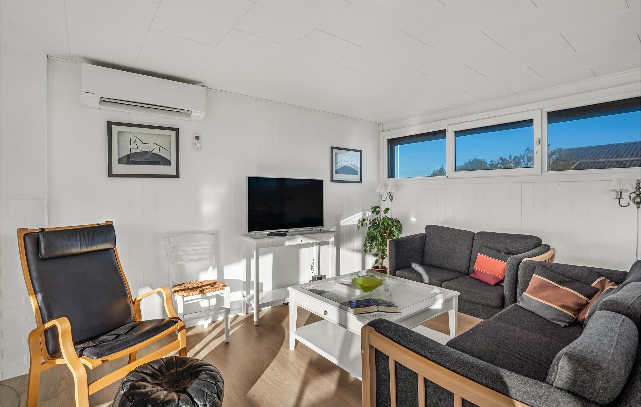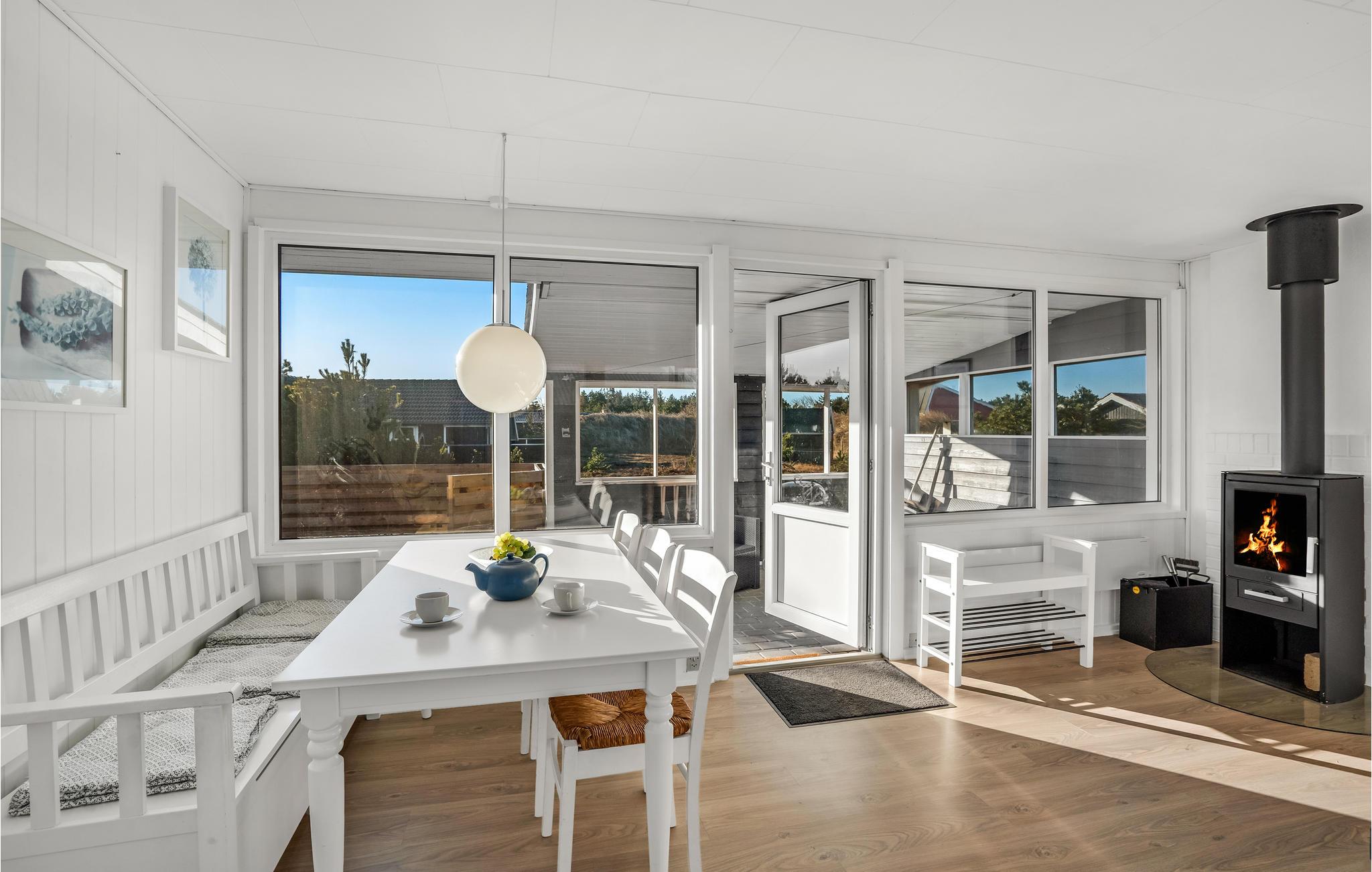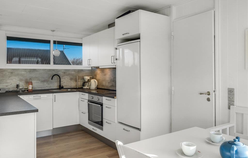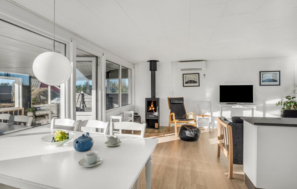 Ihr Ferienhaus bietet Ihnen eine schlichte, aber komfortable Basis für einen erholsamen Urlaub in Bjerregård. Das Haus liegt auf einem schönen Naturgrundstück. Das Haus ist hell und freundlich eingerichtet und besticht durch einen modernen Ferienhausstil. Im Wohnzimmer erwartet Sie eine gemütliche Sofaecke mit Kaminofen. Die großen Fenster lassen viel Licht herein und bieten einen schönen Blick auf die Umgebung. Direkt angrenzend befindet sich der offene Essbereich, der zu geselligen Mahlzeiten einlädt. Die moderne Küche bietet alles Nötige für die Zubereitung einfacher Gerichte.