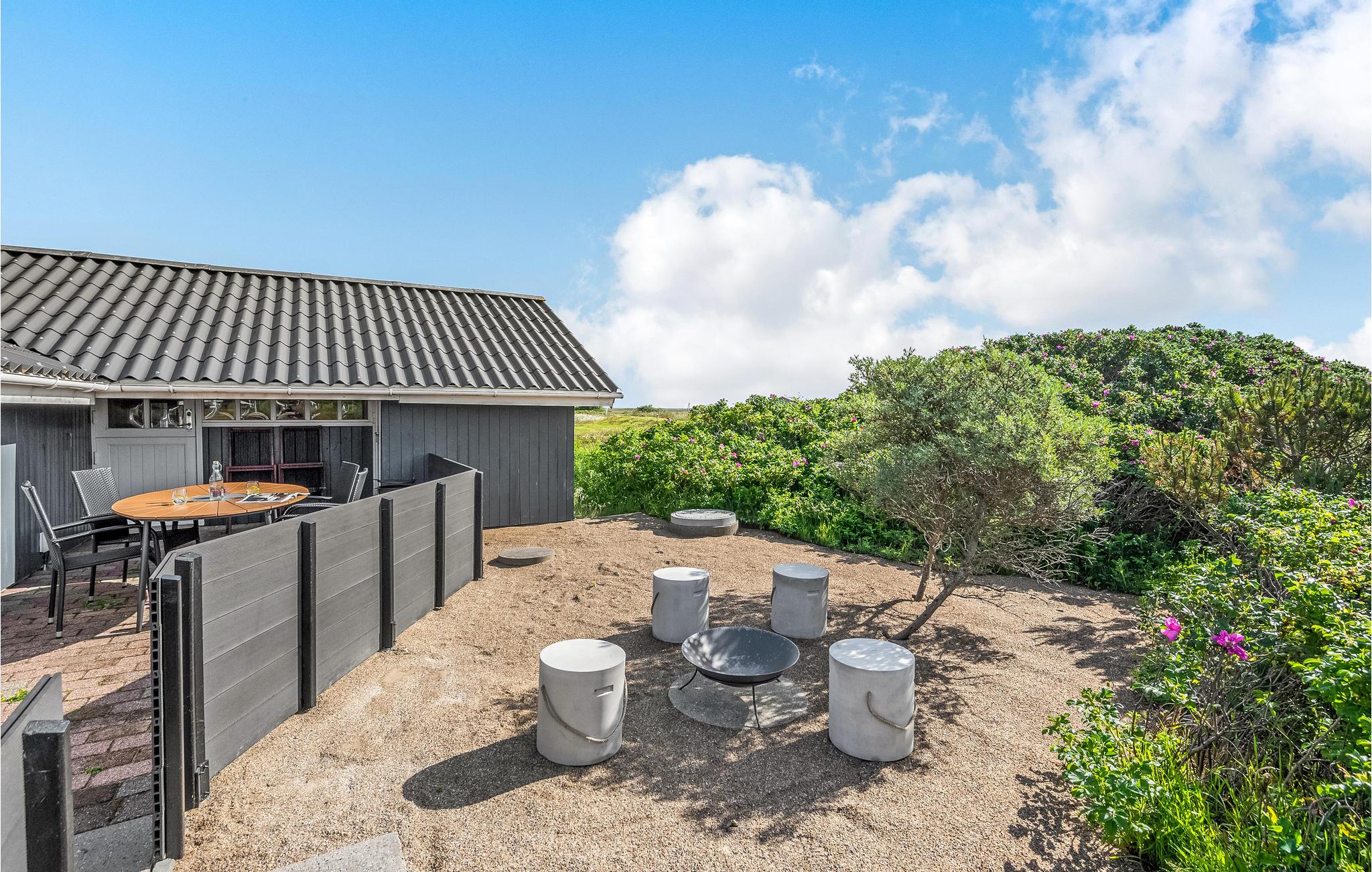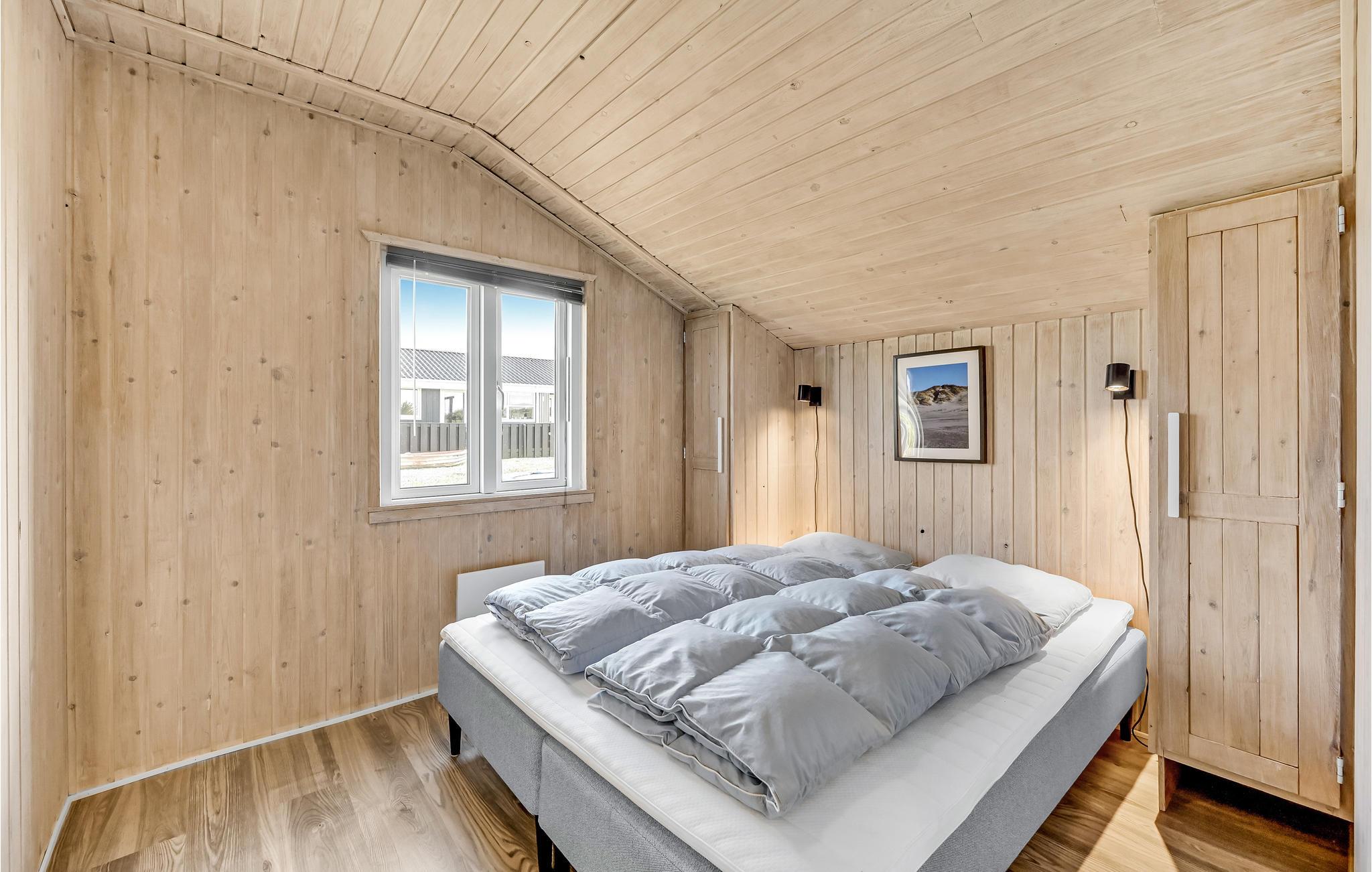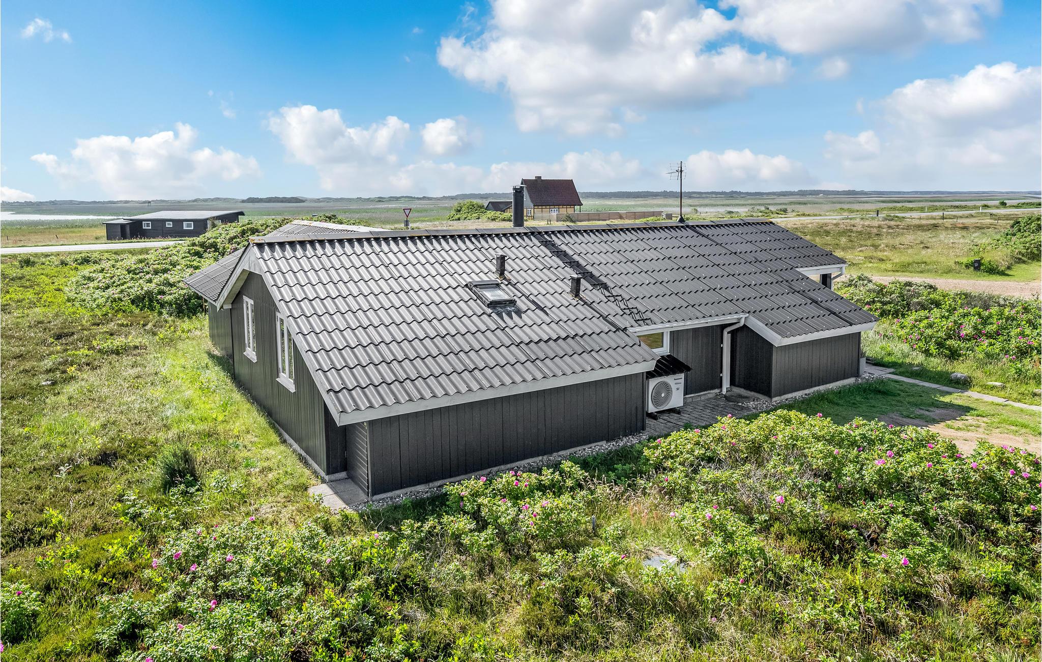 Dieses gemütliche Holzhaus mit Sauna liegt in Bjerregård auf einem schmalen Landstrich zwischen der Nordsee und dem Ringkøbing Fjord.
