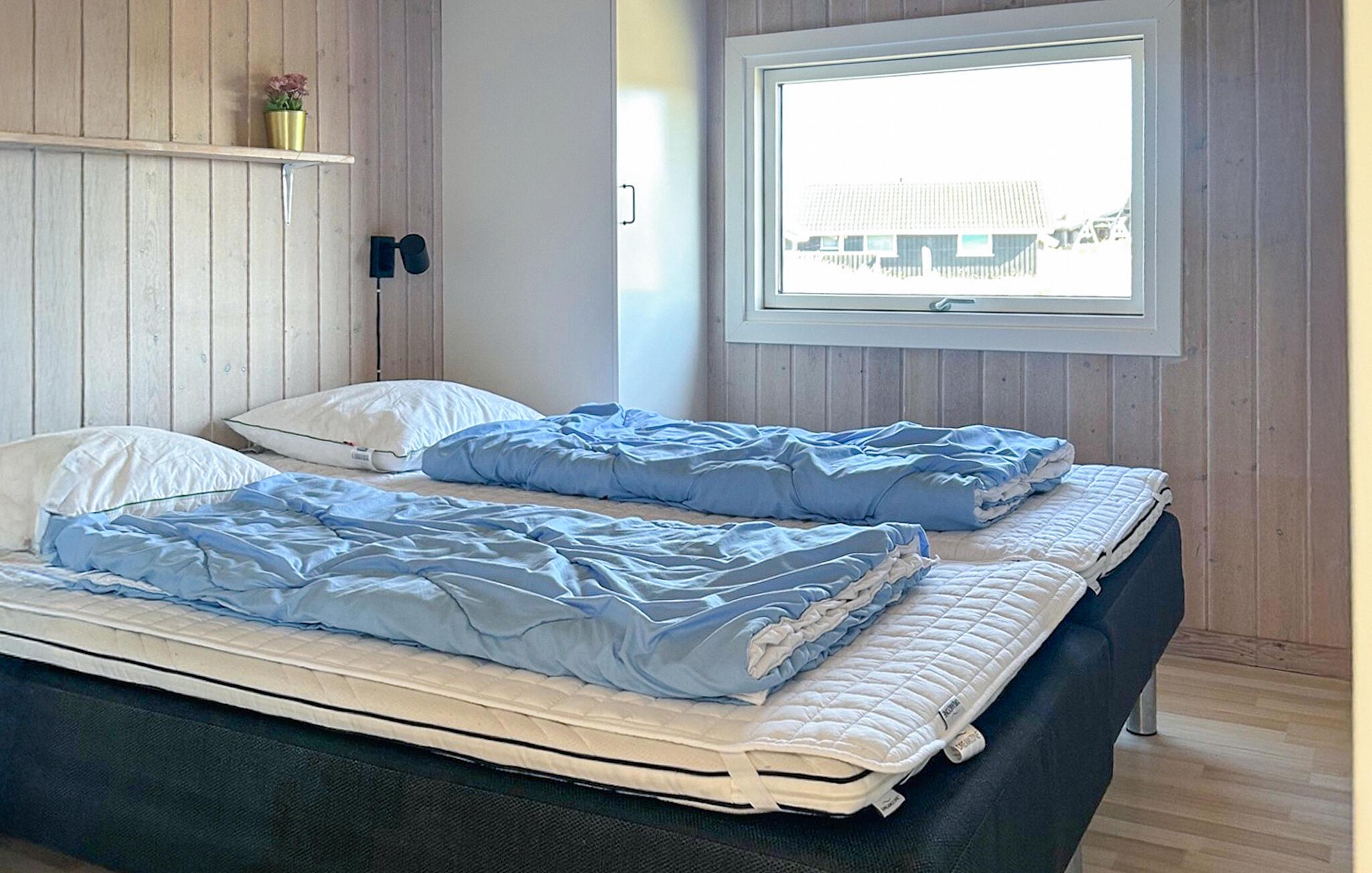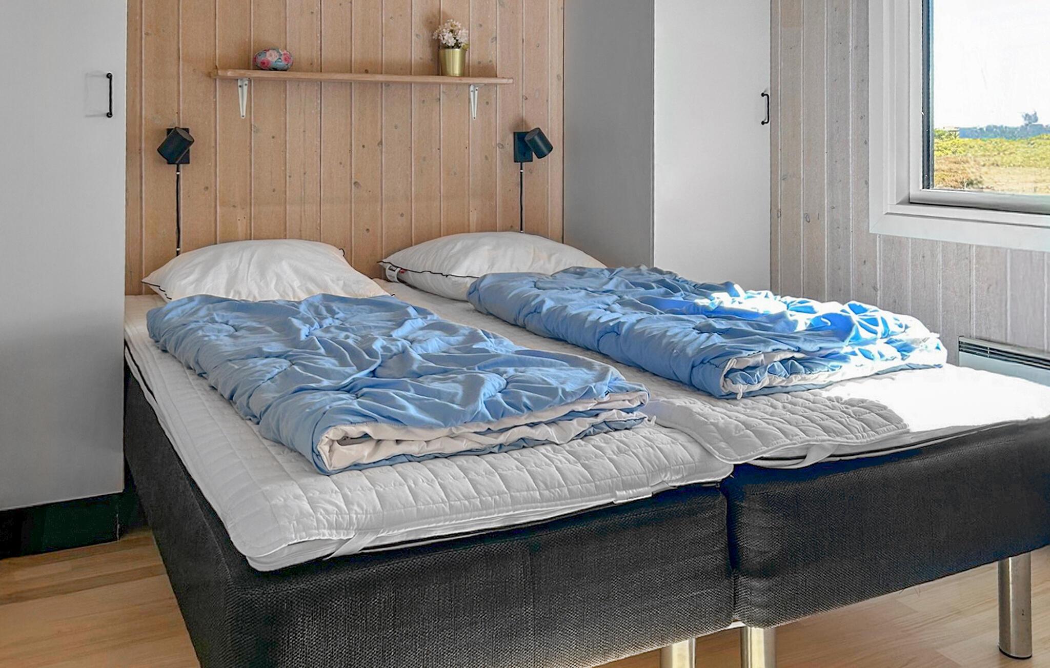 Es gibt 3 Schlafzimmer und zwei Schlafplätze im Alkoven im Wohnzimmer. Im Bad befindet sich ein Whirlpool für 2 Personen und der Zugang zur Sauna.