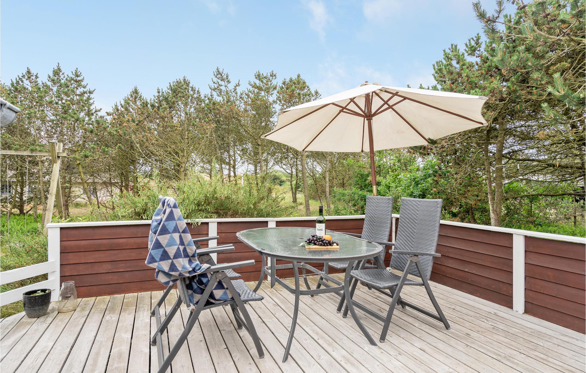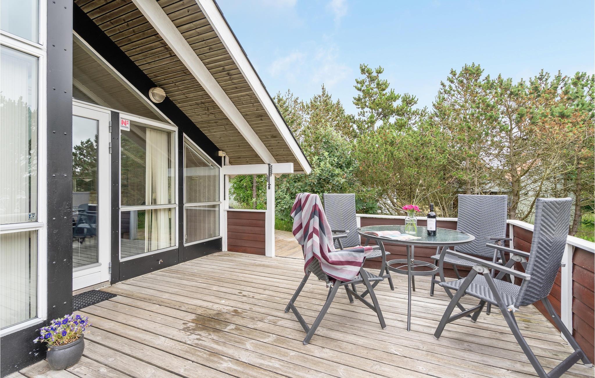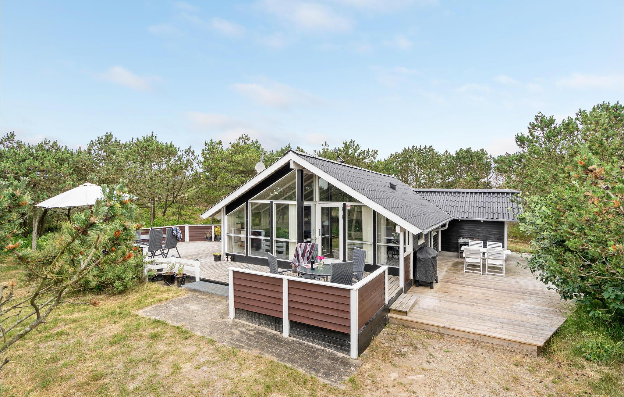 Schönes und gut ausgestattetes Luxushaus, das auf einem welligen Dünengrund liegt und teilweise durch kleinere Kiefern von der Umgebung abgeschirmt ist. Dieses Anwesen wird laufend gepflegt, und ist mit einer Wohnküche mit hellem Ambiente und Kaminofen ausgestattet. Für die moderne Familie sind Glasfaserkabel für die schnelle Internetverbindung, Apple-TV und Chromecast vorhanden. Große, schöne Terrasse, versehen mit modernen Möbeln und Grill. Nahe am Haus gibt es einen Fußweg zum Nordseestrand. Das Gebiet am Meer und Ringkøbing Fjord biete viele Möglichkeiten zur Entfaltung. U. a. können Sie von der Schleuse im Fischerdorf Hvide Sande Heringe angeln, am Fjord Wassersport ausüben, Museen besichtigen, einkaufen und gute Restaurants besuchen.