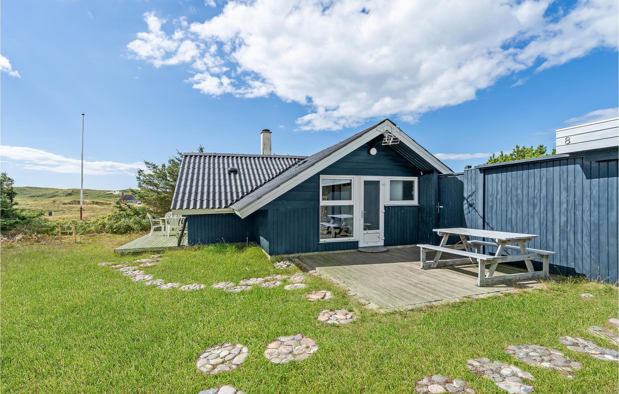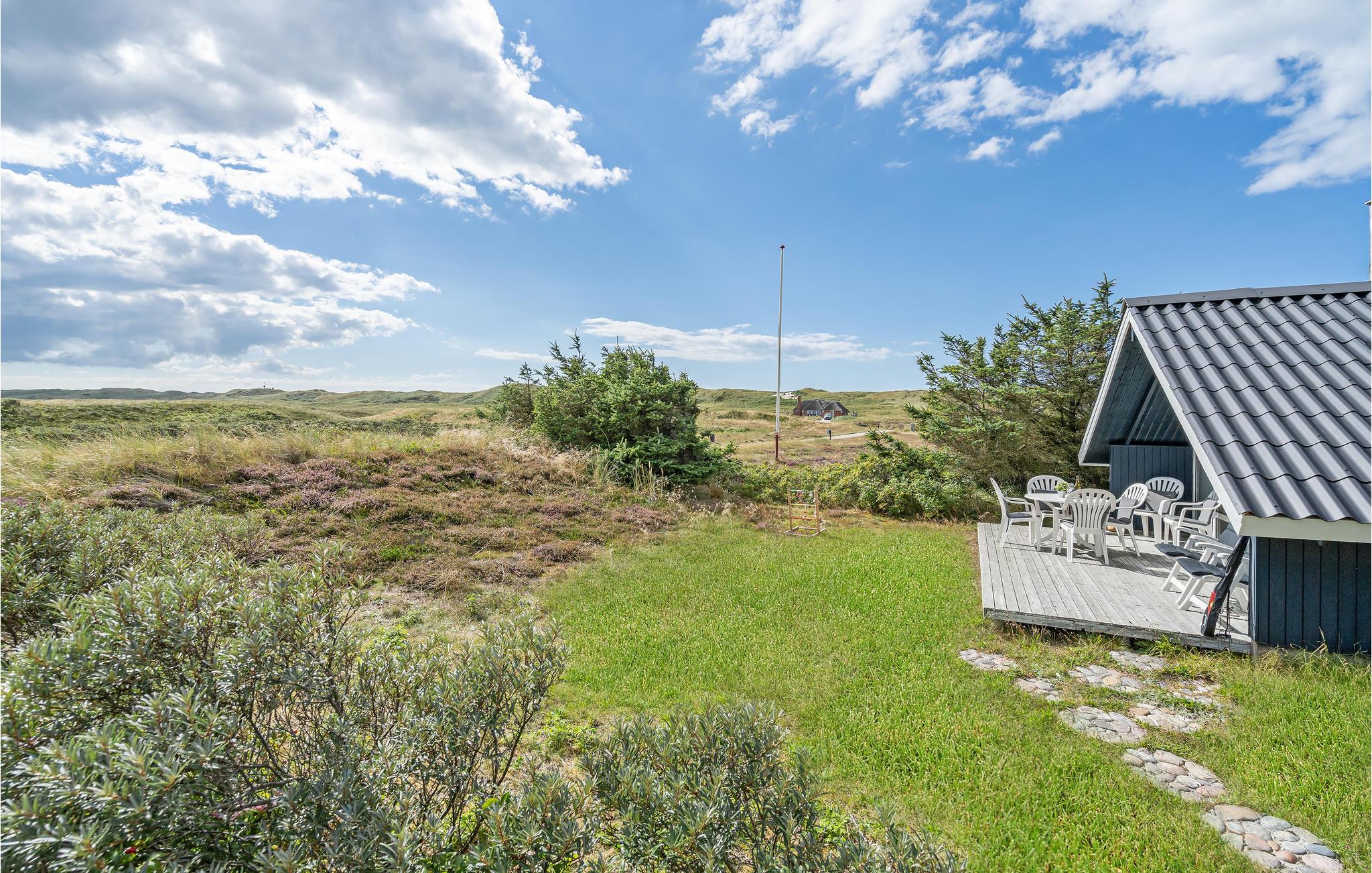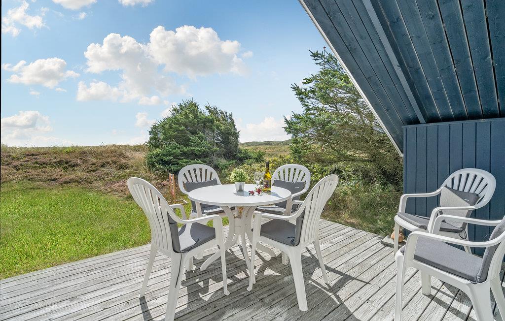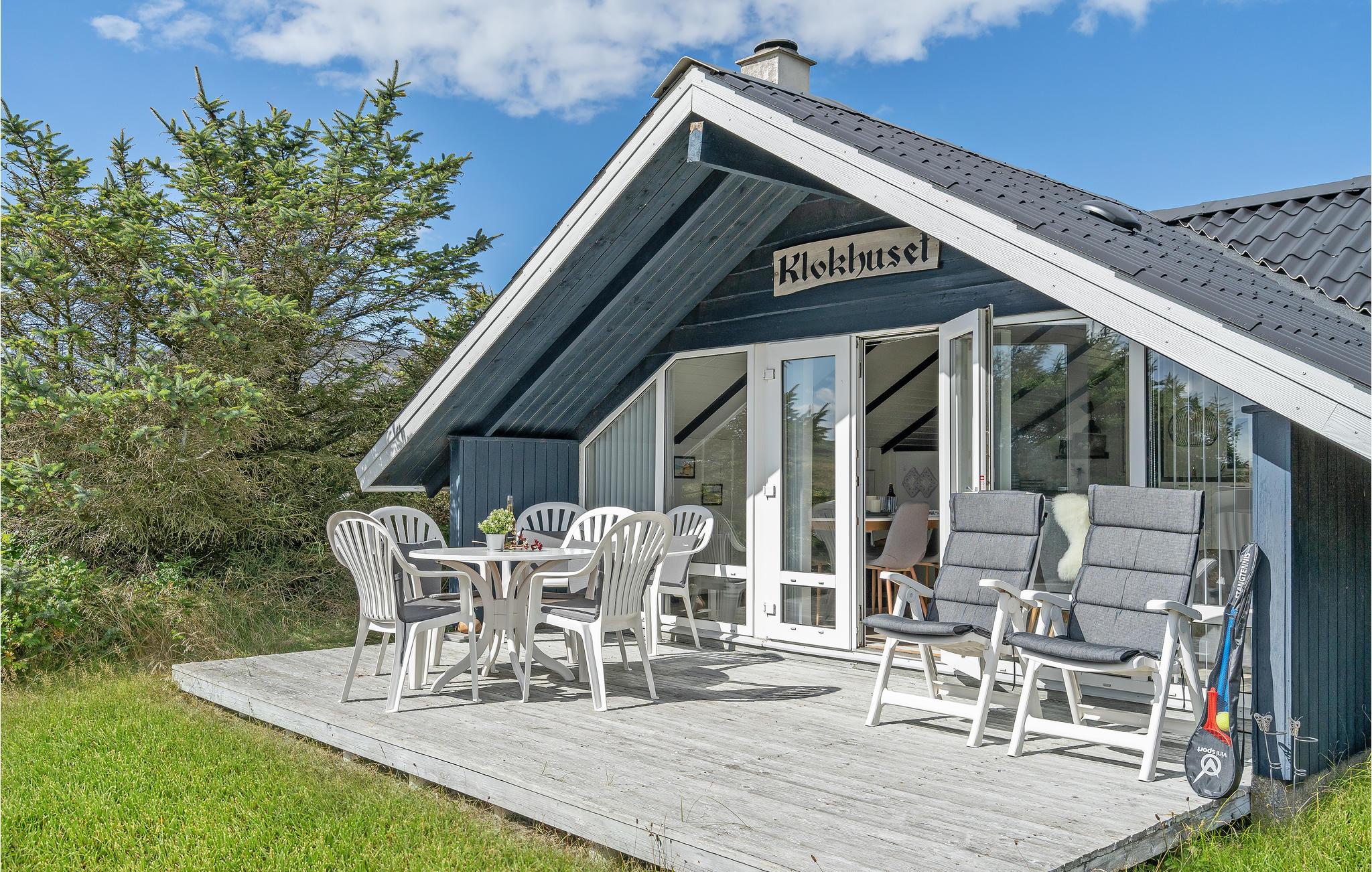 Im Freien steht Ihnen eine Holzterrasse mit Gartenmöbeln zur Verfügung, so dass Sie an warmen Sommerabenden gemütlich zusammen sitzen können. Von der Terrasse haben Sie einen schönen Blick auf die umliegenden Dünen - Genießen Sie die wahre Nordseeatmosphäre in "Klukhuset".