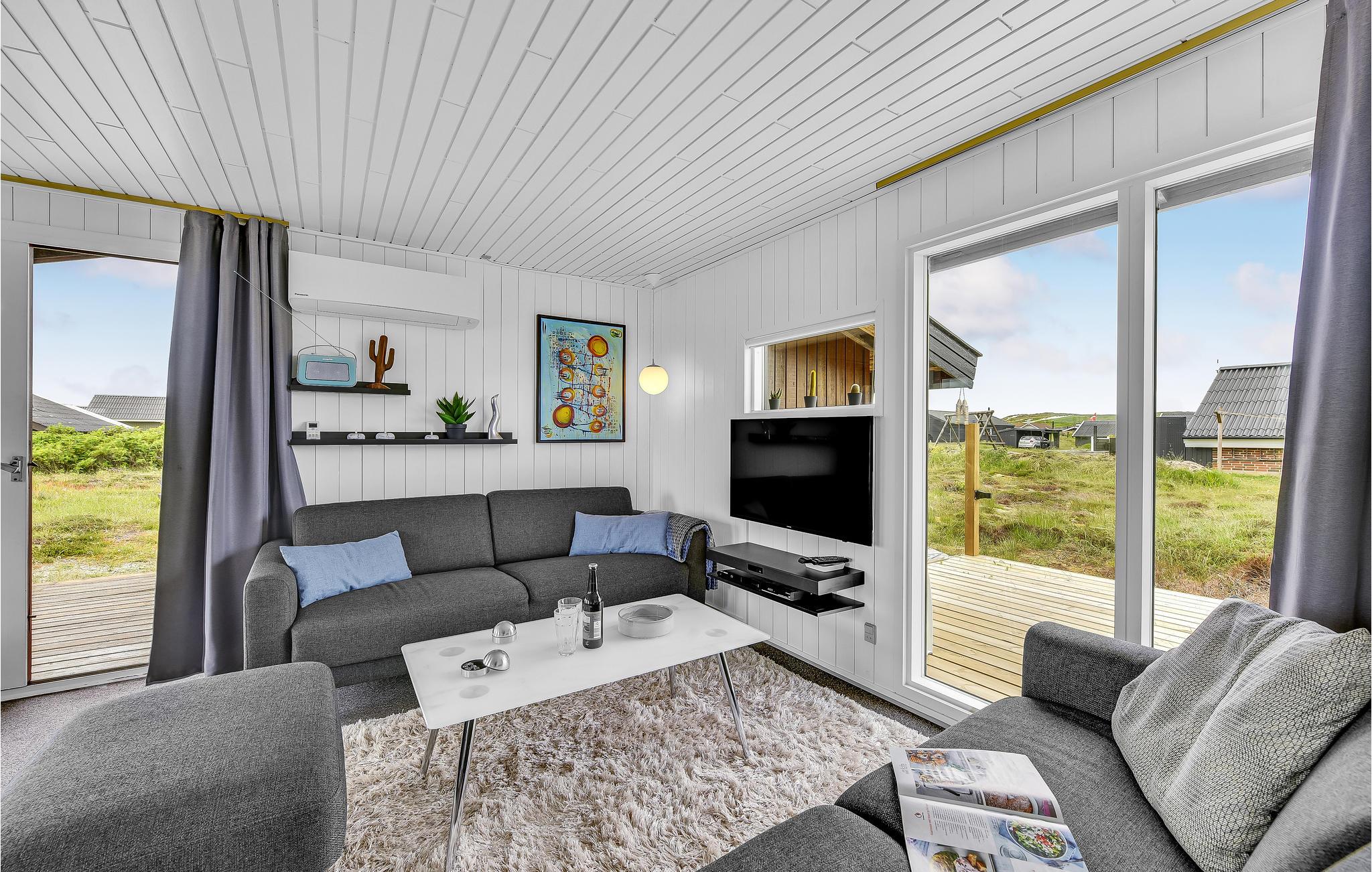 In dem schönen Urlaubsort Bjerregård liegt dieses Ferienhaus auf einem offenen Naturgrundstück mit direktem Blick auf die Dünen. Vom Haus aus sind es in die eine Richtung nur 300 m zum Ringkøbing Fjord und in die andere Richtung sind es 300 m zu den fantastischen Sandstränden an der dänischen Nordsee.