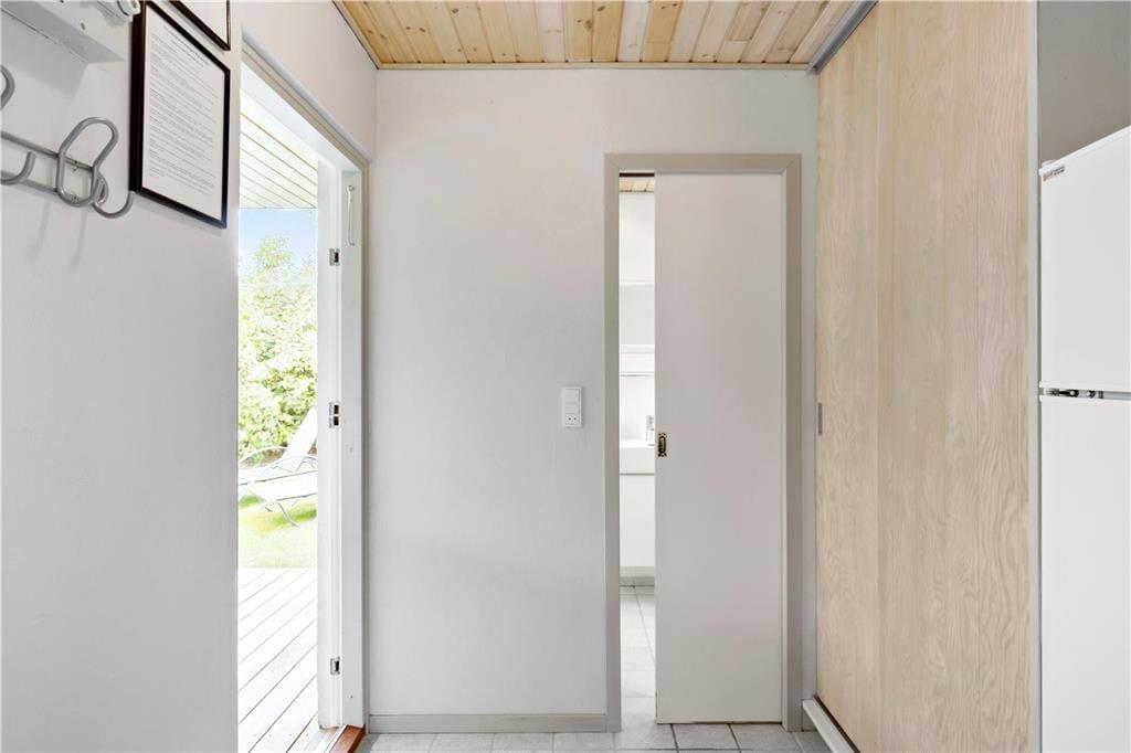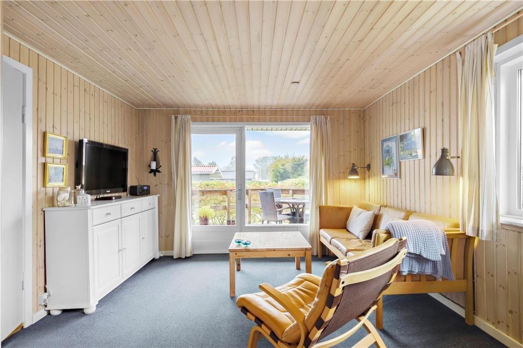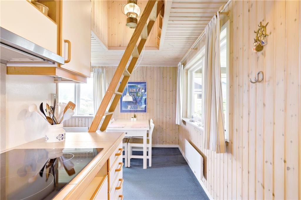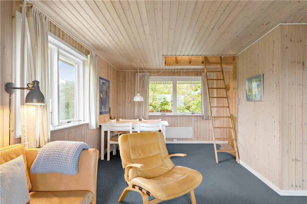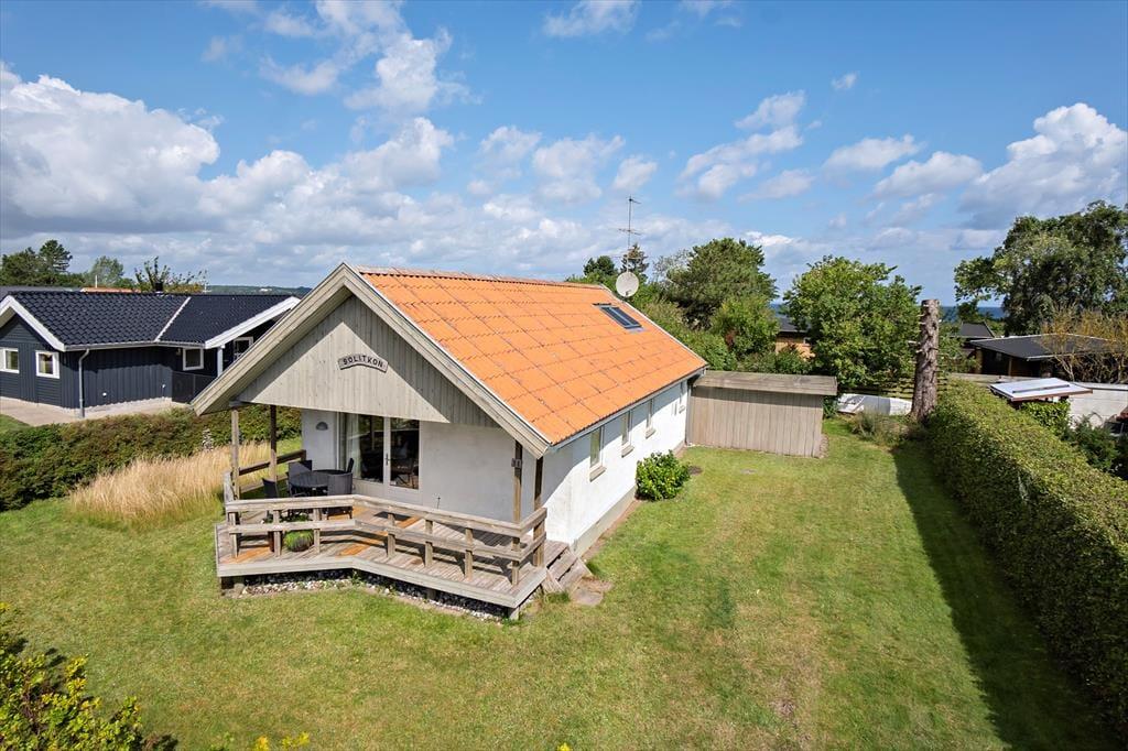 Dieses gemütliche Ferienhaus befindet sich in dem kleinen Ferienhausgebiet Blanke Mark in der Bucht Båring Vig, nördlich von Middelfart. Hier erwarten Sie sehr schöne Möglichkeiten zum Wandern, Baden und Angeln. Die gesamte Umgebung bietet sehr gute Angelmöglichkeiten. Das Haus beinhaltet einen mit der offenen Küche kombinierten Wohnraum, von dem aus Sie direkt hinaus auf die teilweise überdachte Terrasse gelangen. Hinzu gesellen sich ein Schlafraum mit einem Doppelbett und ein Schlafraum mit einem Einzelbett. Vom Wohnraum führt ein Leiter hinauf auf den geräumigen Schlafboden mit einem Doppelbett. Beachten Sie bitte, dass der Schlafboden mit schrägen Wänden lediglich in der Mitte über eine gute Raumhöhe verfügt. Im Erdgeschoss befindet sich außerdem ein Flur in dem ein Kühl- und Gefrierschrank untergebracht ist. Von diesem Flur gelangen Sie in das Badezimmer sowie auf die überdachte Terrasse an der Rückseite des Ferienhauses. Zusammengefasst handelt es sich bei diesem Urlaubsdomizil um ein ansprechendes, kleines Ferienhaus in einem ruhigen Ferienhausgebiet nah an einem guten Badestrand.