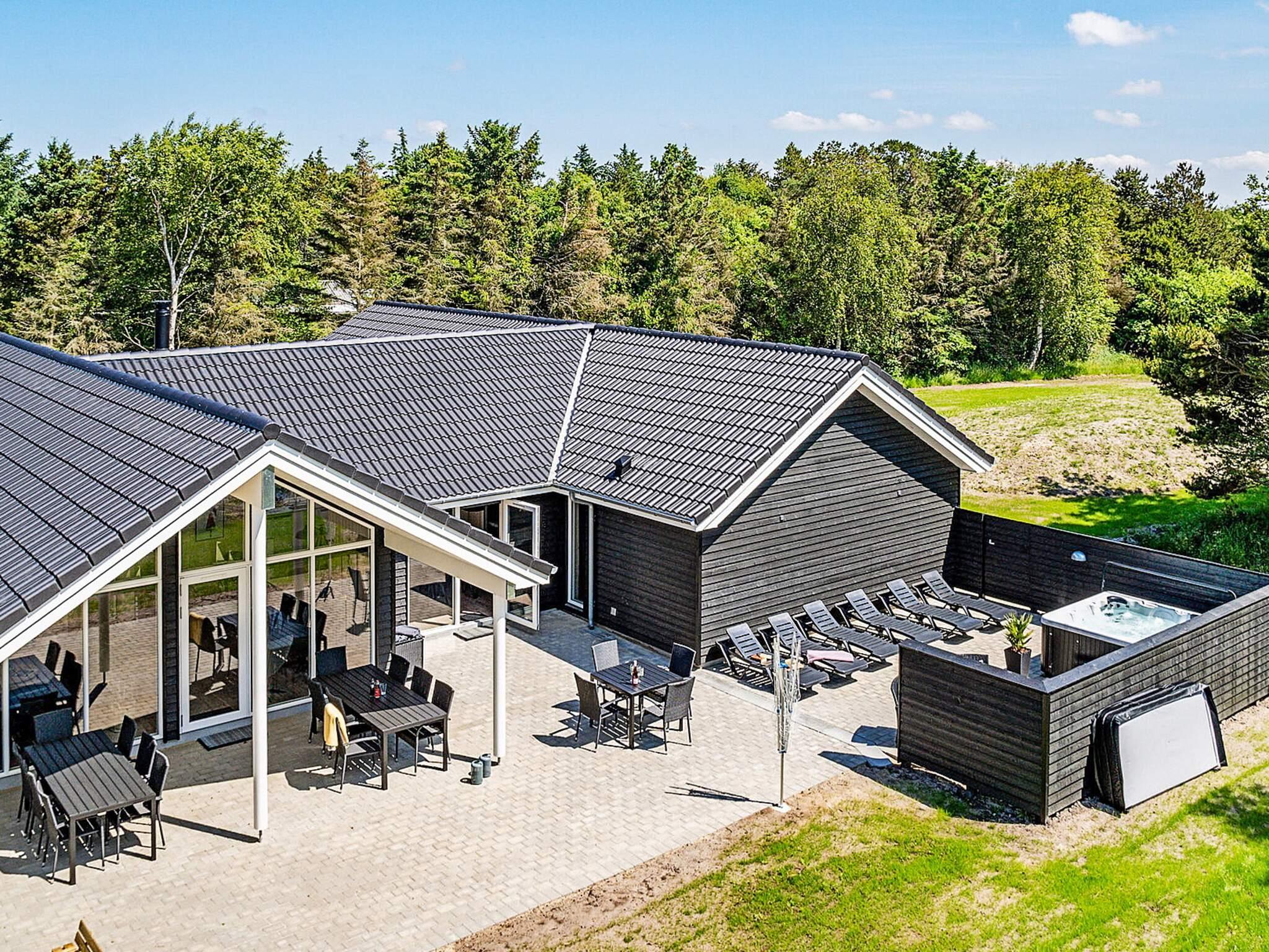 Gut ausgestattetes Ferienhaus in Blåvand mit einem beeindruckenden Poolbereich, der einen 18 m² großen Pool mit Wasserrutsche und Gegenstromanlage, einen schönen Whirlpool für 4 Personen und eine große Sauna umfasst. Es gibt auch einen Whirlpool im Freien.