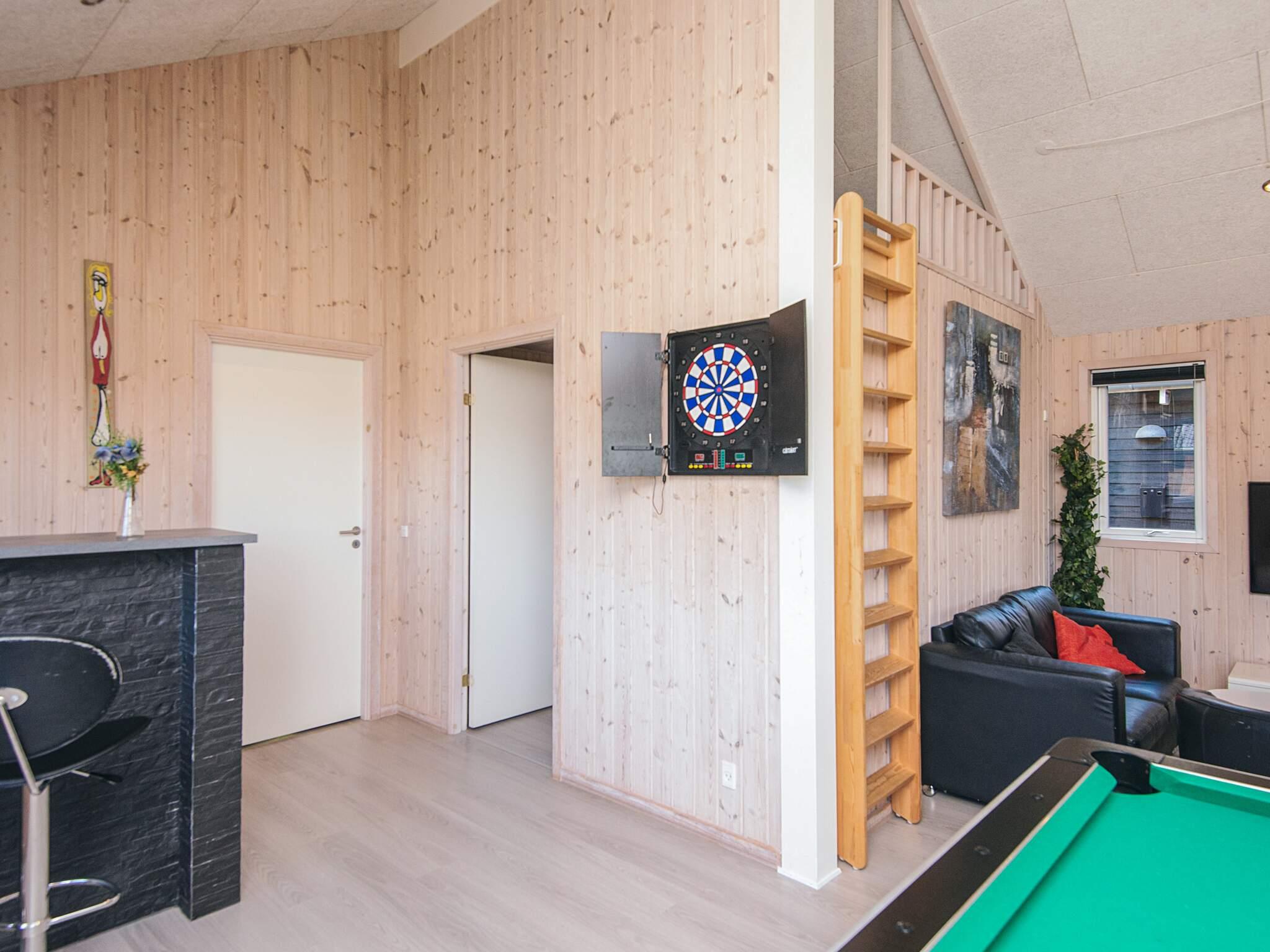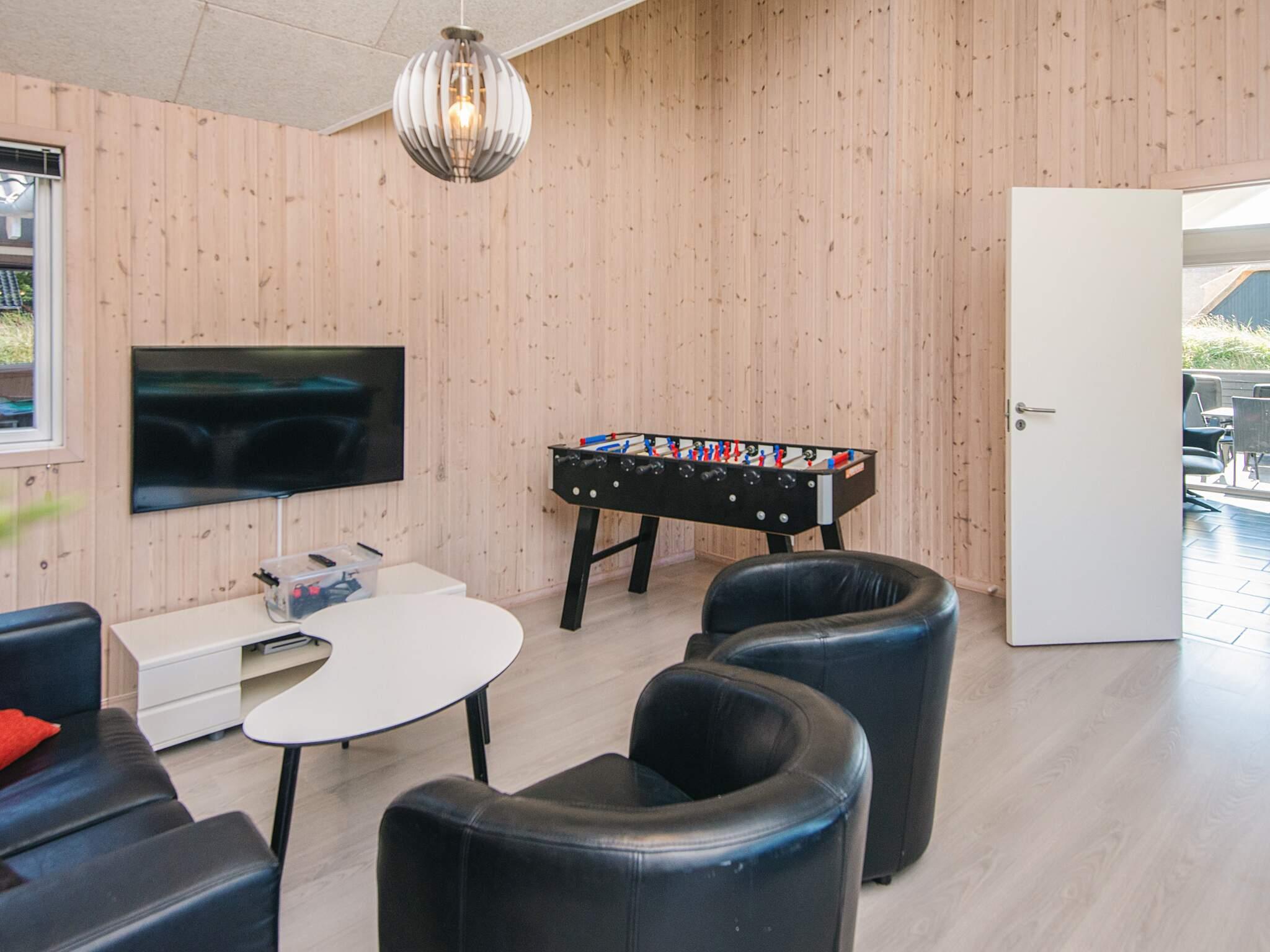 Gut durchdachtes Aktivitätsferienhaus auf einem windgeschützten Naturgrundstück in den Dünen. Der nahe Sandstrand ist, ebenfalls wie der lebhafte Ort Blåvand, zu Fuß gut erreichbar. Das architektonisch interessante Haus ist gut aufgeteilt und eingerichtet und bietet Platz für bis zu 18 Personen. Es gibt drei Badezimmer, sieben Schlafzimmer und einen großen Hems/Schlafboden - alle modern und gut eingerichtet. Fernsehen kann man im Wohnzimmer, im Aktivitätsraum und auf dem Hems. Weiterhin gibt es einen Projektor im Küchen-Aufenthaltsbereich. Spielkonsole für Wii U sowie PlayStation3 vorhanden.