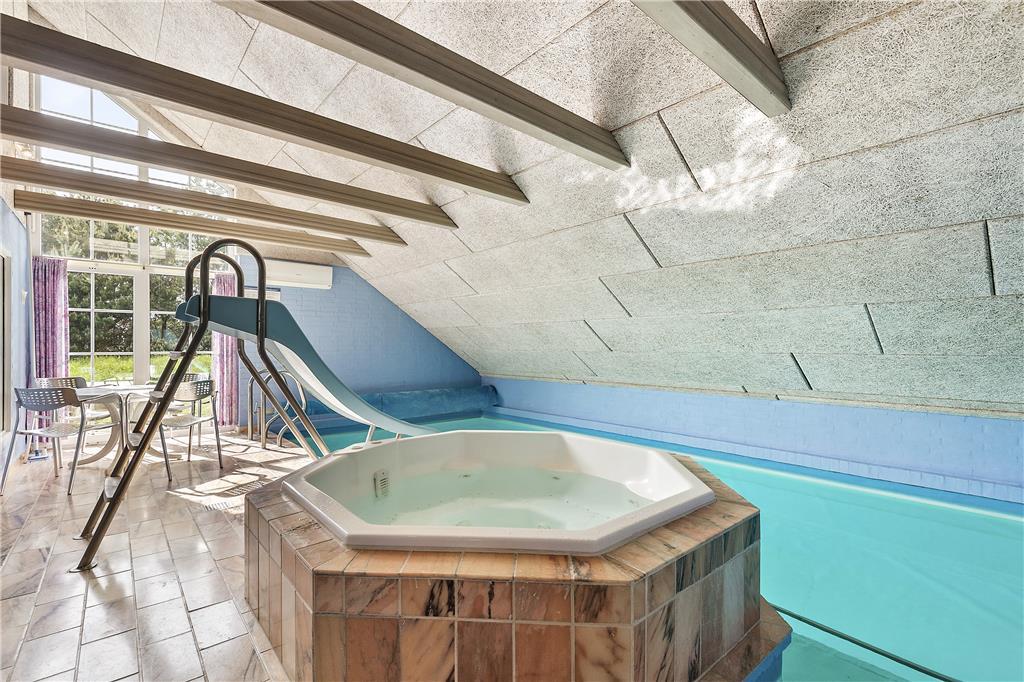 Hier gibt es vier richtig gute Schlafzimmer mit je einem Doppelbett und zwei Badezimmern. Ein Badezimmer ist ausgestattet mit Waschmaschine und Trockner, das zweite verfügt über eine Sauna. Schöne Küche mit gemütlichem Essbereich. In der gut ausgestatteten Küche befinden sich Mikrowelle, Heißluftofen und Geschirrspülmaschine. Helles Wohnzimmer mit einem wunderbaren Blick in den Garten und einen Kamin, der in den kühlen Abendstunden genutzt werden kann. Verbringen Sie viele Stunden in dem 21 m² großen Pool mit Rutsche und dem 5-Personen-Standwasserwhirlpool. Sollte Ihnen zusätzliche Unterhaltung fehlen, sind TV und kostenloses WLAN vorhanden.Das Niedrigenergiehaus wurde zuletzt 2007 renoviert.