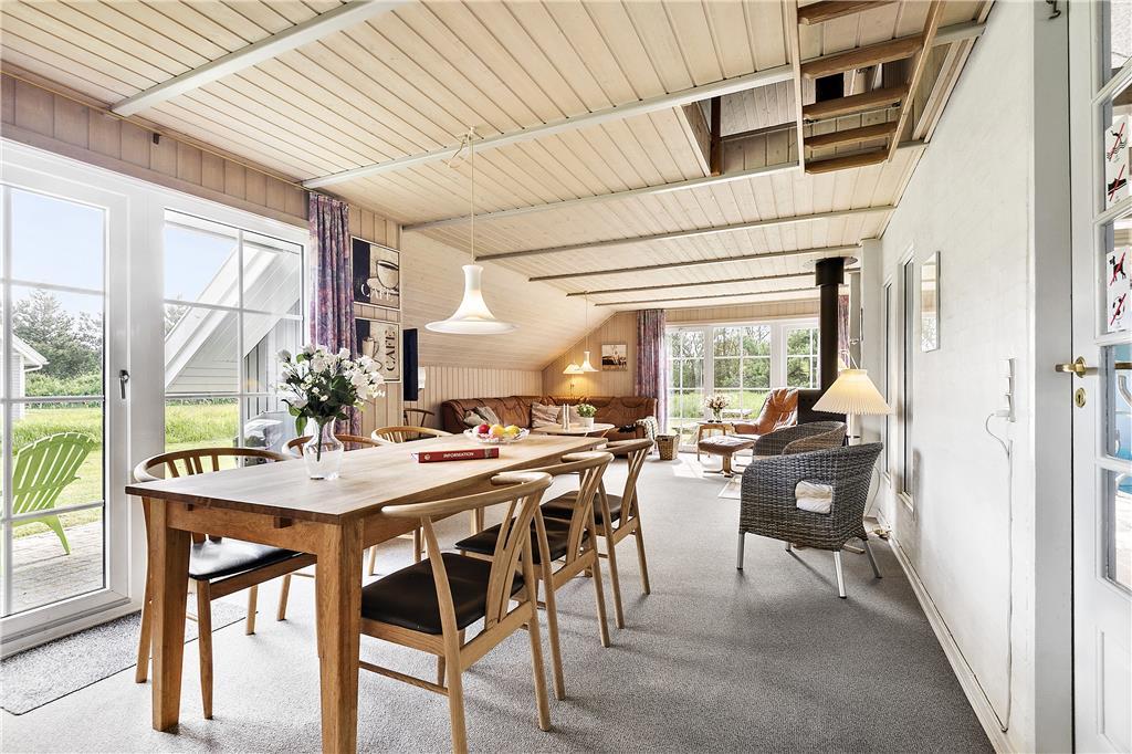 Ein Ferienhaus in guter Lage in Blåvand. Hier wohnen Sie in der Nähe von Einkaufsmöglichkeiten und Strand. Es gibt viele Außenbereiche und zwei schöne Terrassen. Als Mieter diesen Hauses haben Sie kostenlosen Zugang zum Fitnesscenter in Blåvand.