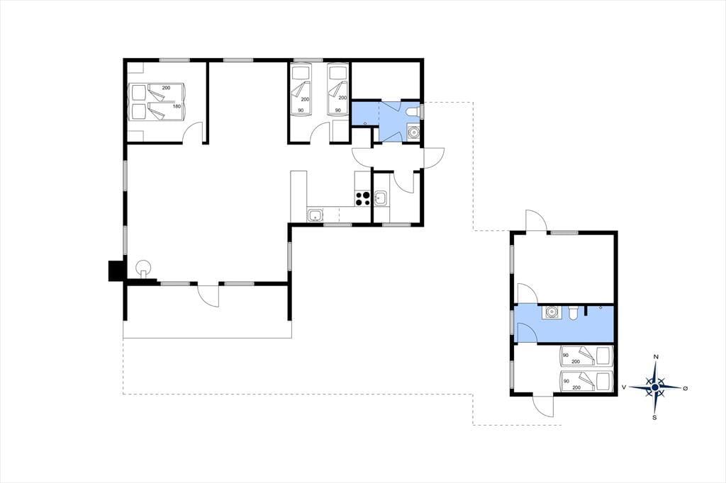 Sobald Sie dieses Ferienhaus betreten, werden Sie sich wie zu Hause fühlen und der Alltagsstress verfliegt wie im Nu und die Entspannung setzt sofort ein. Hier treffen Sie auf eine gemütliche Ferienhausidylle. Das Haus ist außerordentlich geschmackvoll mit vielen Details eingerichtet, die kaum zu beschreiben sind. Ein Haus, dass unbedingt kennengelernt werden muss! Von der schönen Küche haben Sie das große und helle Wohnzimmer mit Esstisch und einer gemütlichen Sofaecke mit Kamin im Blick. Vom Wohnzimmer haben Sie direkten Zugang zu einer sehr großen, geschlossenen Holzterrasse. Es steht ein Schlafzimmer mit einem Doppelbett zur Verfügung, sowie ein Schlafzimmer mit zwei Einzelbetten. Das Badezimmer ist platztechnisch gut ausgenutzt, außerdem befindet sich hier die Sauna. Das letzte Zimmer ist ein Hauswirtschaftsraum mit Stauraum und Waschmaschine. Direkt vor der Haustür und über die Terrasse gelangen Sie zu einem gemütlichen Nebenhaus mit einem kleinen Schlafzimmer (zwei Einzelbetten) und einem geräumigen, hellen Badezimmer.