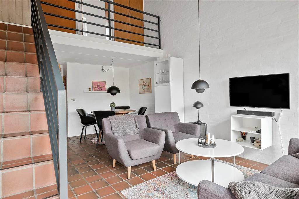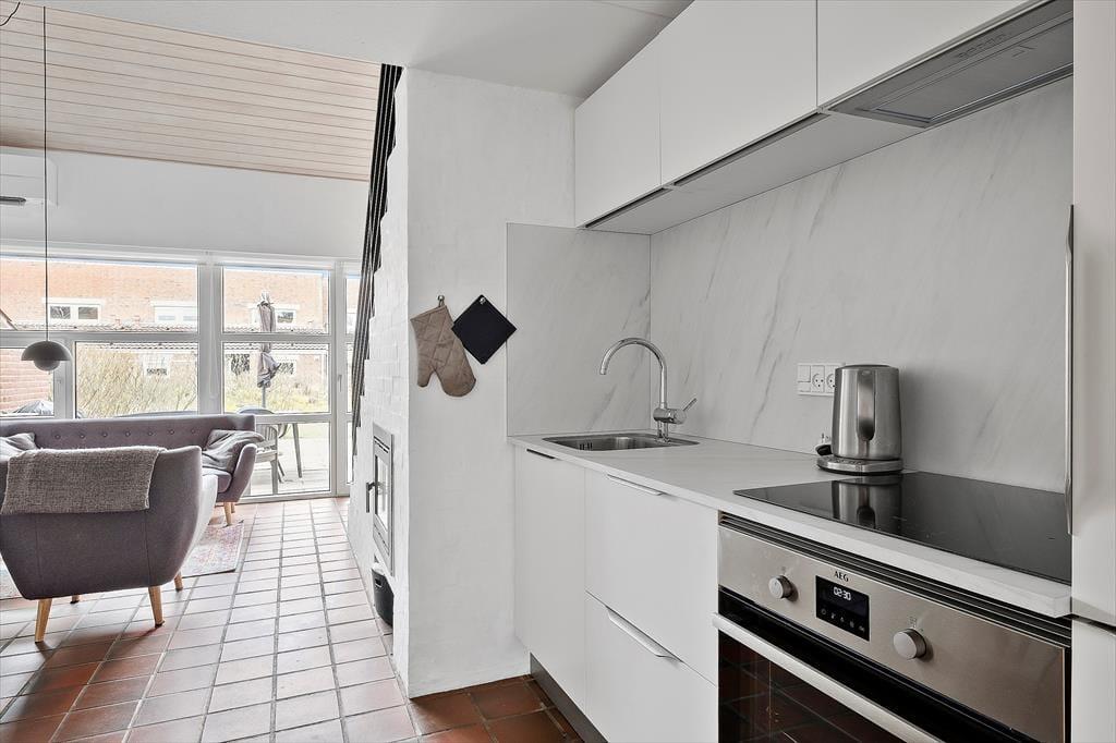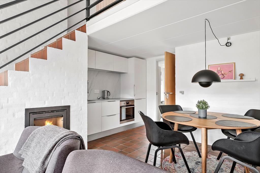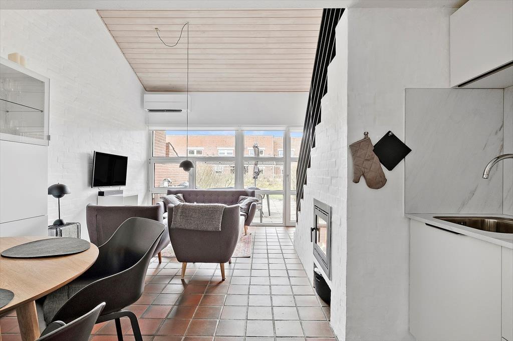 Wohnung in Blåvand Strand og By, Westjütland, mit Platz für 4 Erwachsene und 2 Haustier(e). Es erwartet Sie eine gemütliche Einrichtung mit u.a. Kamin.
