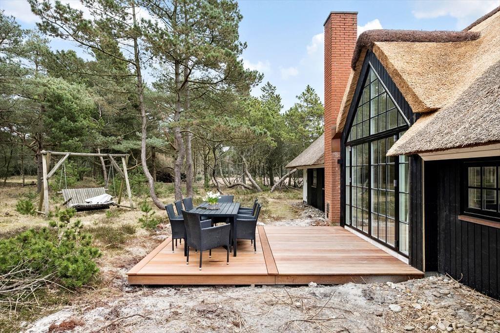 Dieses reetgedeckte Qualitätsferienhaus wurde im Jahr 2023 einer umfassenden Renovierung unterzogen. Es begeistert mit Ästhetik und Komfort. Das im Per Knoldsvej in Blåvand gelegene Haus bietet vier Schlafräume, drei Badezimmer, einen großen Aufenthaltsraum und einen herrlichen Poolbereich. Bis zu acht Personen können hier Ihren Urlaub verbringen.