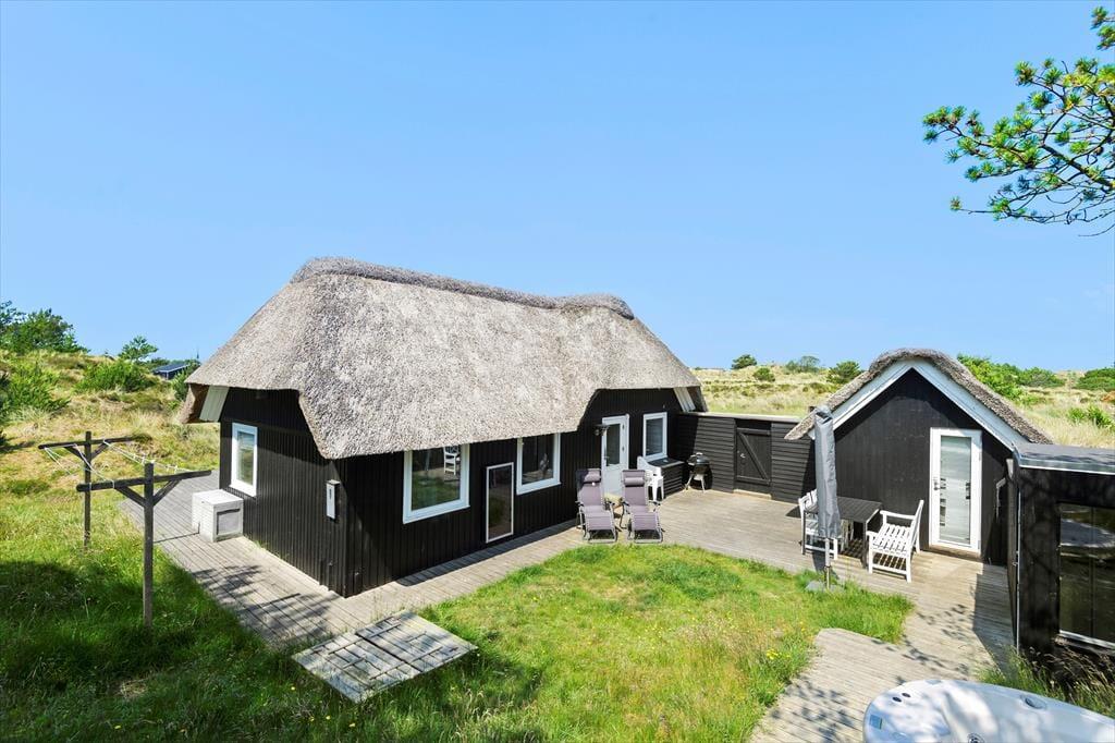 Gemütliches Ferienhaus in Blåvand mit Sauna, Kamin und Whirlpool, ideal für erholsame Tage am Westjütland-Strand.