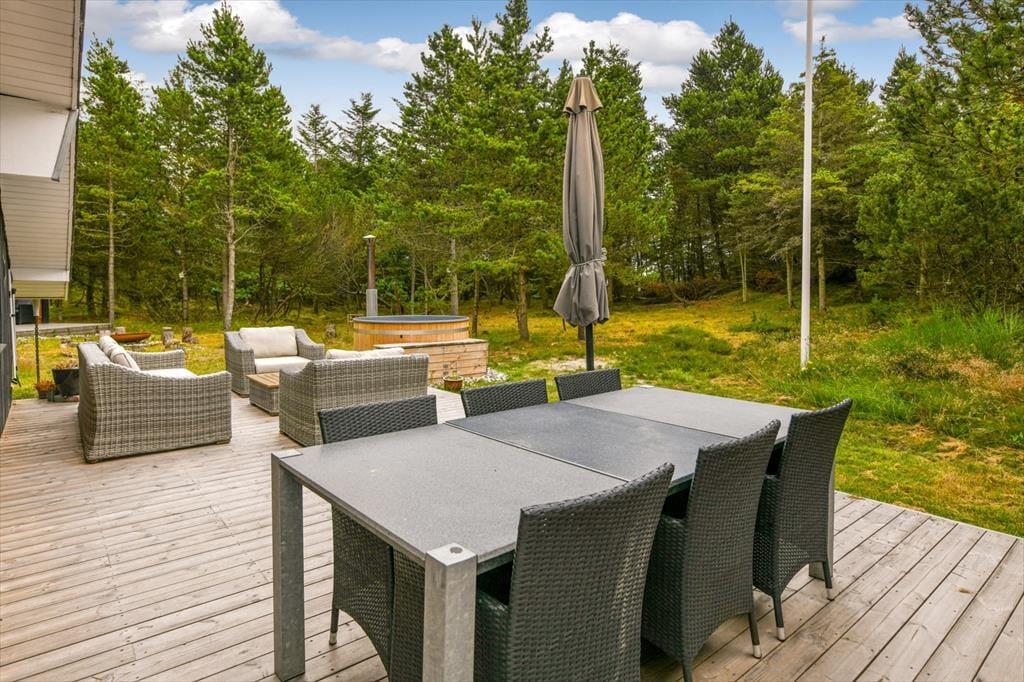 Ferienhaus in Blåvand Strand og By, Westjütland, mit Platz für 8 Erwachsene und 2 Haustier(e). Es erwartet Sie eine gemütliche Einrichtung mit u.a. Kamin, darüber hinaus sind Waschmaschine, Spülmaschine und Wäschetrockner in dieser Unterkunft vorhanden.
