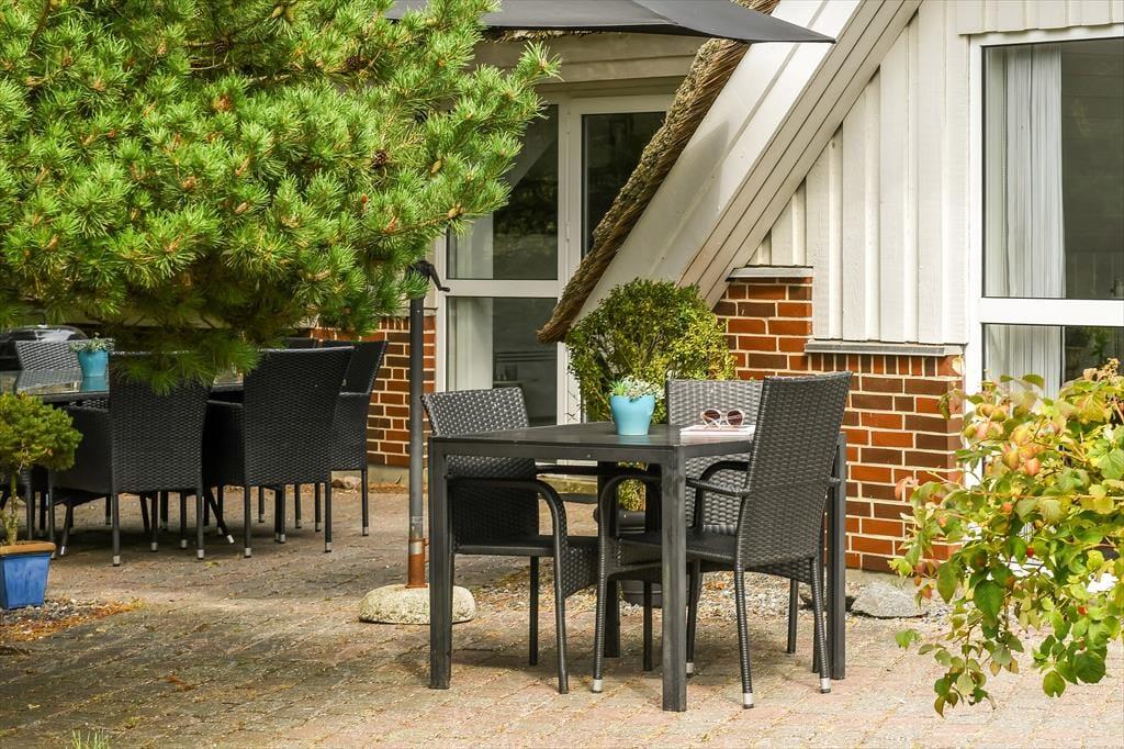 Wenn die Sonne lacht, gelangt ihr vom Wohnzimmer aus direkt hinaus auf die Terrasse. Mit anderen Worten könnt ihr also eine Tasse Kaffee oder ein Buch mit auf die dem friedvollen grünen Garten zugewandte südliche Terrasse nehmen. Wenn ihr mit Kindern verreist, werden diese sich bestimmt über die Schaukeln und die Sandkiste freuen. Die Rasenfläche lädt darüber hinaus zum Frisbee-Spielen, für Wikingerschach und zum Umhertollen mit dem Hund.