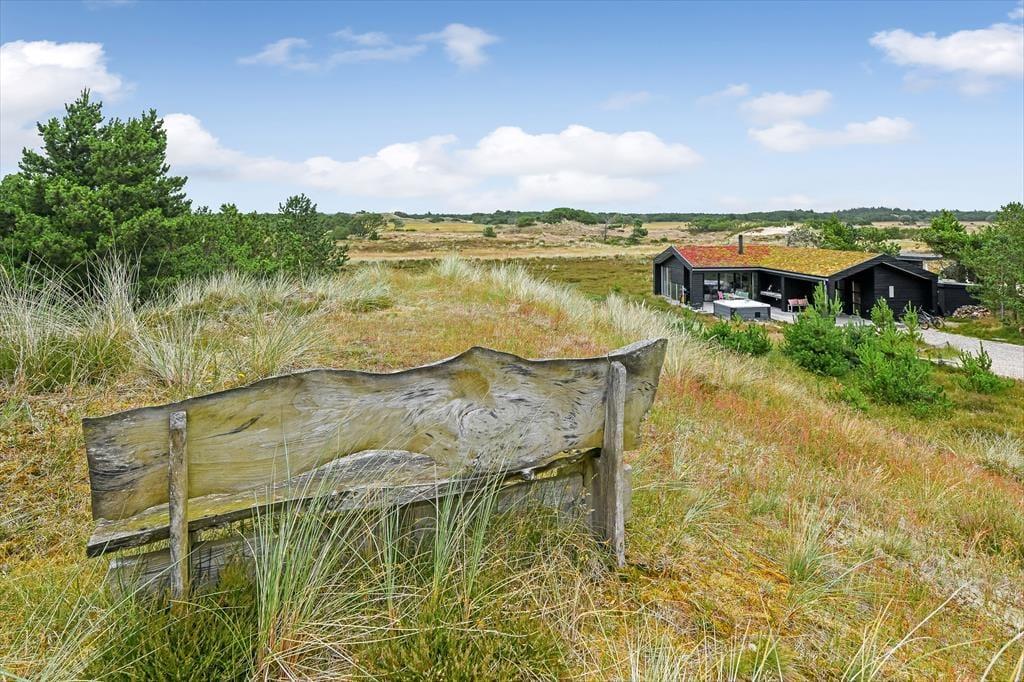 Das Ferienhaus liegt mitten auf einem großen Grundstück, das durch einen hübschen Heideteppich und anderen naturbelassenen Bewuchs geziert wird. Gen Norden erstreckt sich die Dünenheide - ein Ausblick, an dem du dich nie sattsehen wirst, ganz gleich, ob du es dir auf einem Gartenstuhl, auf der Aussichtsbank oder im Outdoor-Whirlpool gemütlich machst. Die singenden Vögel in den Baumkronen und der Duft der Heide wecken deine Sinne. Selbst wenn sich die Dämmerung über Blåvand senkt, ist es einfach herrlich, sich draußen in friedvoller Umgebung aufzuhalten - eventuell auf einem der überdachten Terrassenbereiche, die sich abends als stimmungsvolle Rückzugsorte erweisen.