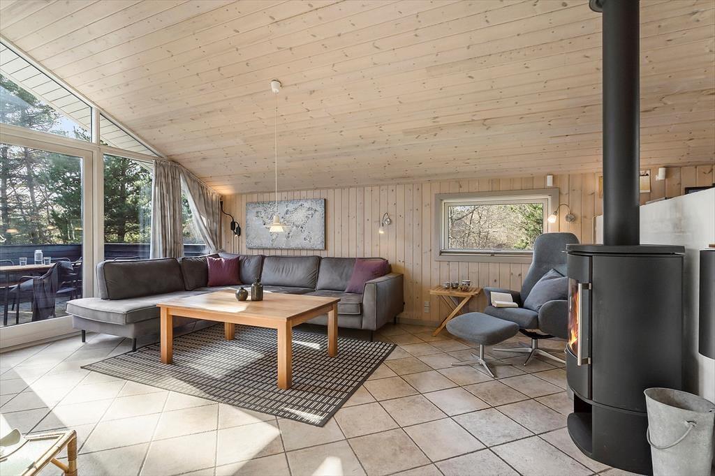 Ved Volden 8 ist eine schöne Urlaubsadresse für diejenigen, die sich inmitten friedvoller Umgebung erholen und dennoch nah an Blavånds Ortsmitte und nur wenige Kilometer abseits der Nordsee wohnen möchten. Das Ferienhaus, das mit einer Sauna und einem Whirlpool zu verwöhnen weiß, liegt auf einem grünen Naturgrundstück mit attraktiven Terrassen und ausreichend Platz zum Spielen.