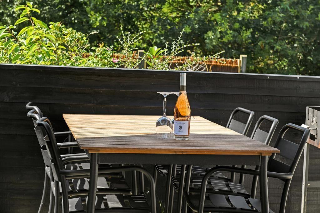 Das große Naturgrundstück besticht mit seinem schönen Bewuchs, der unter anderem aus duftenden Heckenrosen und hohen Nadelbäumen besteht. Auf der großen Rasenfläche werden nicht nur deine Kinder vergnügt umhertollen. Ihr könnt hier alle gemeinsam Wikingerschach und Frisbee spielen und auf Tore schießen. Für die kleinen Gäste stehen eine Schaukel und eine kleine Sandkiste bereit. Gemeinsam verlebt ihr glückliche Stunden auf dem großen, gepflasterten Terrassenareal, das mehrere schöne Aufenthaltsplätze bietet. Ihr genießt gemütliche, vom Vogelgesang untermalte Frühstücke, entspannte Mittagessen in der Mittagssonne und gesellige Grillabende.
