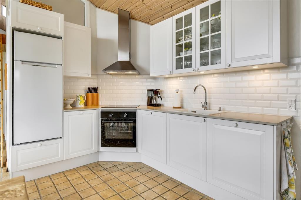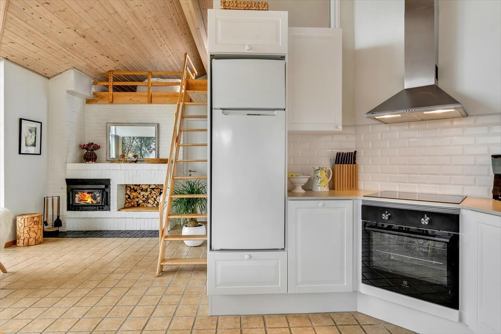 Aufgrund der großen Fenster und der hohen Decken empfängt dich dieses Ferienhaus mit einer hellen, luftigen Wohnatmosphäre. Im Aufenthaltsbereich und im Badezimmer sorgen Fußbodenheizungen für behagliche Temperaturen. An kühlen Tagen gibt es wohl kaum etwas Schöneres, als ein entspanntes Bad im Whirlpool zu genießen. Im Anschluss machst du es dir in aller Ruhe in der Polstersitzgruppe vor dem Einbaukaminofen gemütlich oder spielst mit dem Rest der Familie am Esstisch unterhaltsame Gesellschaftsspiele. Eure Mahlzeiten bereitest du sicher gern in der offenen Küche zu. Während du kochst oder backst, werden die Kinder sich garantiert auf den Schlafboden zurückziehen, der sich als gemütliche Kuschelzone und Spielecke erweist.