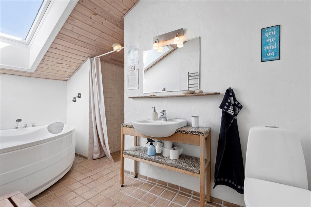 Von der friedvollen Sackgasse Digevej gelangst du direkt in die offene Landschaft. Egal ob in Sommersandalen oder in deinen Joggingschuhen, der Strand ist zu Fuß schnell erreicht. Die bezaubernde Natur, die Blåvand umgibt, kannst du mit deiner Familie auch gut per Fahrrad erkunden. Falls ihr keine Drahtesel mitgebracht habt, könnt ihr im Ort welche leihen. Ganz nah am Ferienhaus erwartet euch der beliebte Blåvand Zoo, der nicht nur die Augen der Jüngsten zum Strahlen bringen wird. Ein kleines Stück weiter entfernt begrüßt euch das grandiose Tirpitz-Museum, das innen wie außen eine wahre Augenweide ist. Den stimmungsvollen Ortskern Blåvands mit vielen ganzjährig geöffneten Geschäften, gemütlichen Lokalitäten und guten Eisläden erreicht ihr bereits nach wenigen Kilometern.