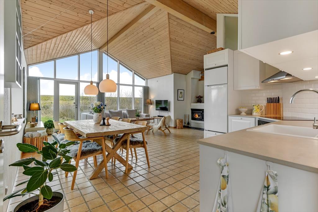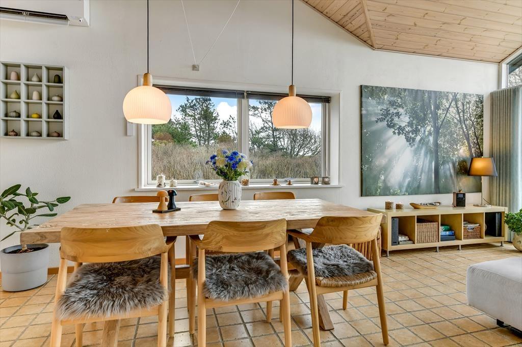 Digevej 6 ist eine perfekte Urlaubsadresse für diejenigen, die gern in friedvoller Umgebung und zugleich nah an Strand und unterhaltsamen Aktivitätsangeboten wohnen möchten. Dieses herrliche Ferienhaus befindet sich am Ende einer Sackgasse, direkt an den grünen Strandwiesen, die sich vor dem Hvidbjerg Strand erstrecken. Obwohl du hier ganz ungestört wohnst, erreichst du binnen kürzester Zeit den Blåvand Zoo und das Tirpitz-Museum.