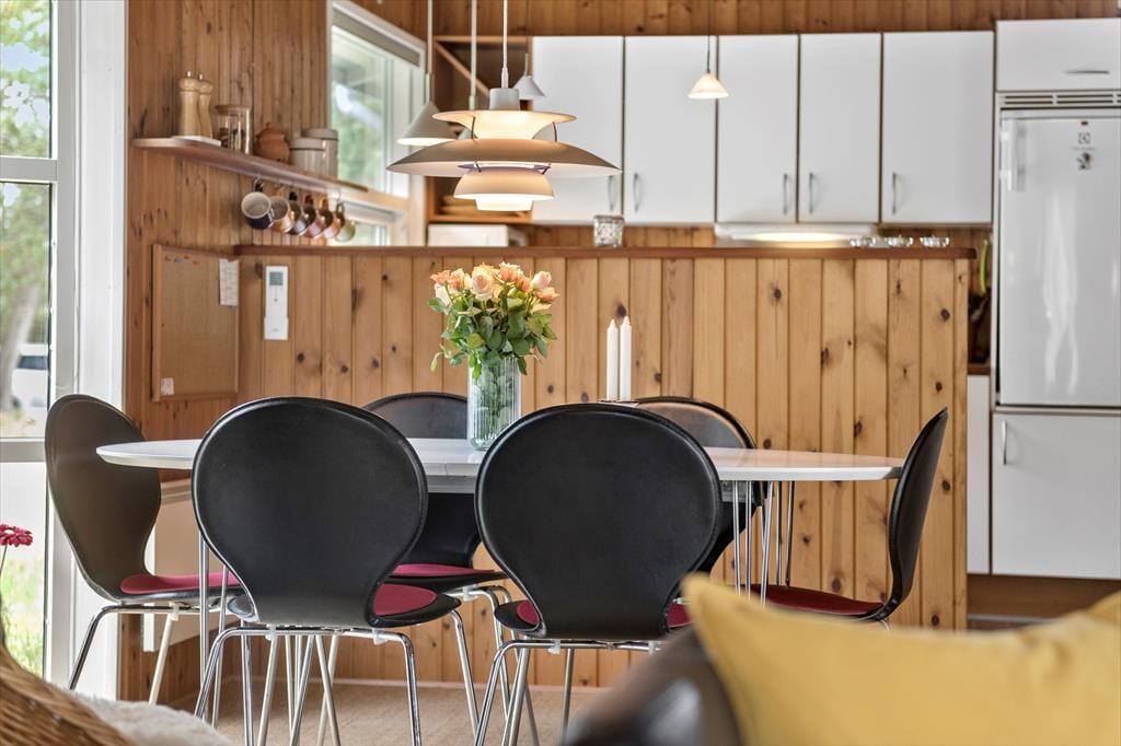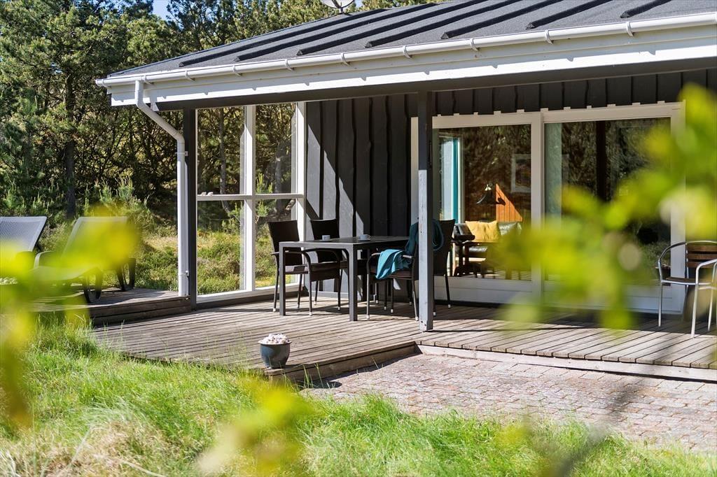 Ein großes, teilweise überdachtes Terrassenareal erstreckt sich östlich und südlich des Ferienhauses. Ganz gleich, ob du mit deiner Familie draußen frühstücken, zu Mittag essen oder den Abend mit einem kühlen Getränk ausklingen lassen möchtest, es ist einfach schön, hier draußen zu sitzen. Deinen Kindern wird es garantiert leichter fallen, sich vom Gartenstuhl auf der Terrasse zu erheben. Es ist daher sehr von Vorteil, dass auf dem Grundstück eine Schaukel, eine Sandkiste und ein Spielhaus bei den Jüngsten für Abwechslung sorgen. Auf dem großen Naturgrundstück laden darüber hinaus Fußballtore zum ein oder anderen familieninternen Match ein. Gern werden deine Kinder außerdem Verstecken spielen und zwischen den Bäumen auf Entdeckungstour gehen. Im Hestehaven 13 erwartet dich zusammenfassend gesagt, eine wahre Oase für die gesamte Familie.