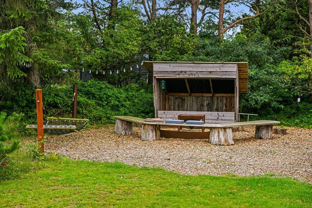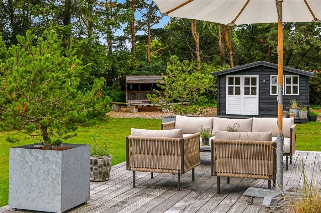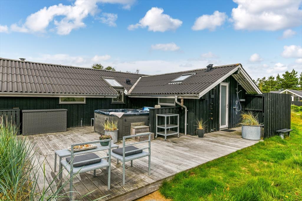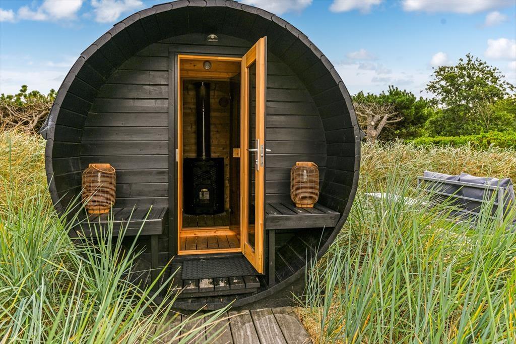 Ein Outdoor-Whirlpool, eine Saunatonne und eine Außendusche fügen sich bei diesem Ferienhaus zu einem perfekten Wellnessbereich zusammen, der deine gesamte Familie zu traumhaft erholsamen Stunden einlädt. Unter freiem Himmel erwartet dich zudem eine große Holzterrasse, auf der du dich auf Liegestühlen von der Sonne verwöhnen lässt und entspannt mit deinen Lieben Mahlzeiten im Freien und gemütliche Grillabende verlebst. Falls euch nach einem guten Essen der Sinn nach ein wenig Bewegung steht, könnt ihr auf eurem eigenen Beachvolleyballplatz sportlich aktiv werden. Bedeutend beschaulicher geht es hingegen rund um die schöne Lagerfeuerstelle zu bei der außerdem eine gute Hängeschaukel/Hängematte bereit steht.