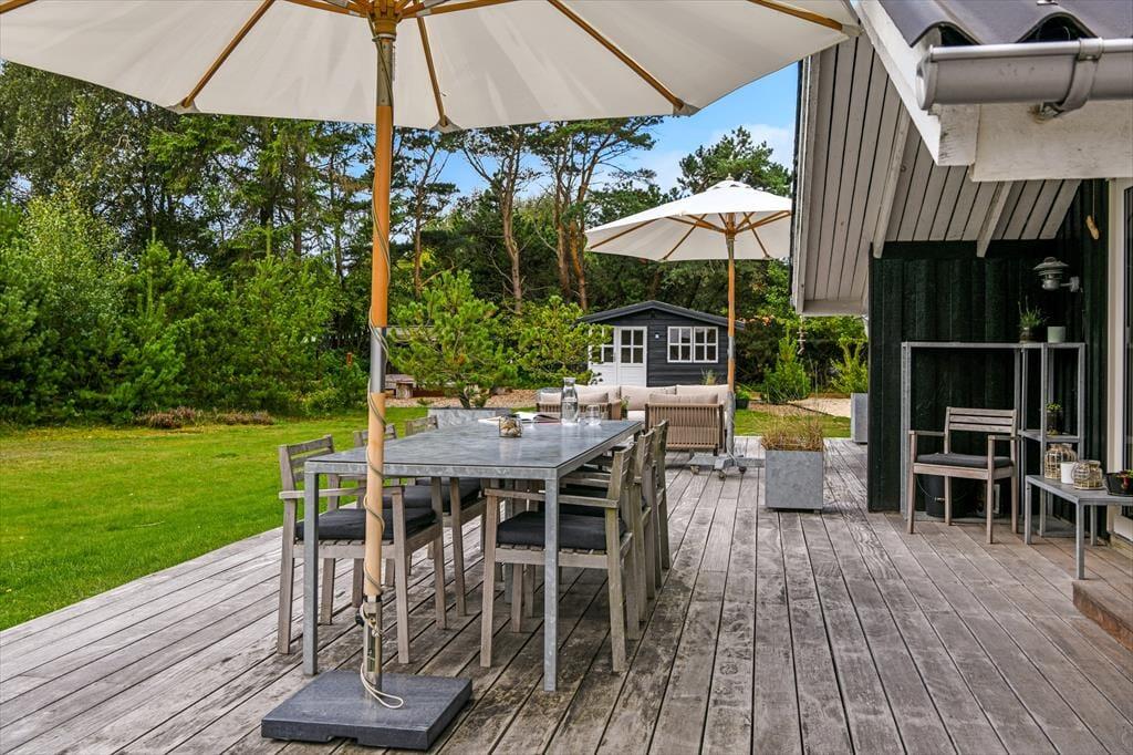 Der Weg Harestien ist eine kleine Sackgasse, die direkt am Ferienhaus endet. Von deinem Ferienhaus gelangst du problemlos in die reizvolle Heidelandschaft, die sich nördlich des Badeortes ausbreitet. Generell ist Blåvand für seine reizvolle Natur ringsum bekannt. In den dichten Dünenwäldern kannst du Mountainbike fahren oder einer der markierten Wanderrouten folgen. Falls es dich und deine Familie eher ans Wasser zieht, wird euch der wenige Kilometer entfernte Hvidbjerg Strand begeistern. Am Wasser genießt ihr bestes Strandleben mit erfrischenden Bädern, großen Eiswaffeln und tollen selbstgebauten Sandburgen. Den lebendigen Ortskern erreicht ihr zu Fuß innerhalb von nur zehn Minuten. Im Ort laden diverse schöne Geschäfte und gute Lokalitäten das gesamte Jahr hindurch zum Bummeln und Verweilen ein.