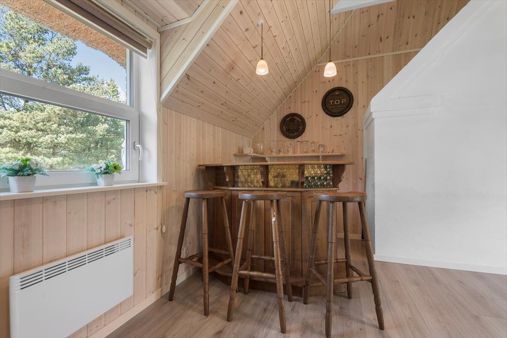 Dieses ansprechende, klassische Urlaubsdomizil mit Reetdach und roter Steinfassade empfängt dich mit gut eingerichteten Räumlichkeiten und einer schönen Wohnatmosphäre. Die vier Schlafräume und zwei Badezimmer sind so eingerichtet und platziert, dass das Haus ohne weiteres bis zu acht Personen oder auch zwei befreundete Familien beherbergt. Im Laufe des Tages genießt ihr ganz nach Stimmung und persönlicher Vorliebe viele gemeinsame Stunden oder verteilt euch auf den Wohnraum, den Poolberiech und den Aktivitätsraum. An kühlen Tagen kannst du es dir wunderbar vor dem Kaminofen im großen Wohnraum gemütlich machen, im Pool baden oder die Wärme des Whirlpool und der Sauna in vollen Zügen genießen. Bedeutend aktiver geht es mit Sicherheit im schönen Aktivitätsraum deines Ferienhauses zu, in dem ihr unter anderem Billard, Tischtennis und Airhockey spielen könnt. Zu geselligen Momenten lädt der Bartresen im Aktivitätsraum ein.