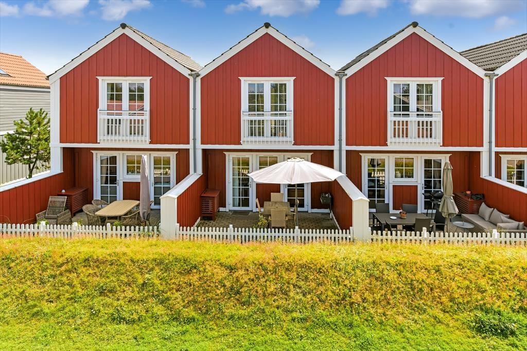 Es handelt sich um ein helles und freundliches Reihenhaus mit roter Holzfassade und einem gut durchdachten Grundriss über zwei Etagen.