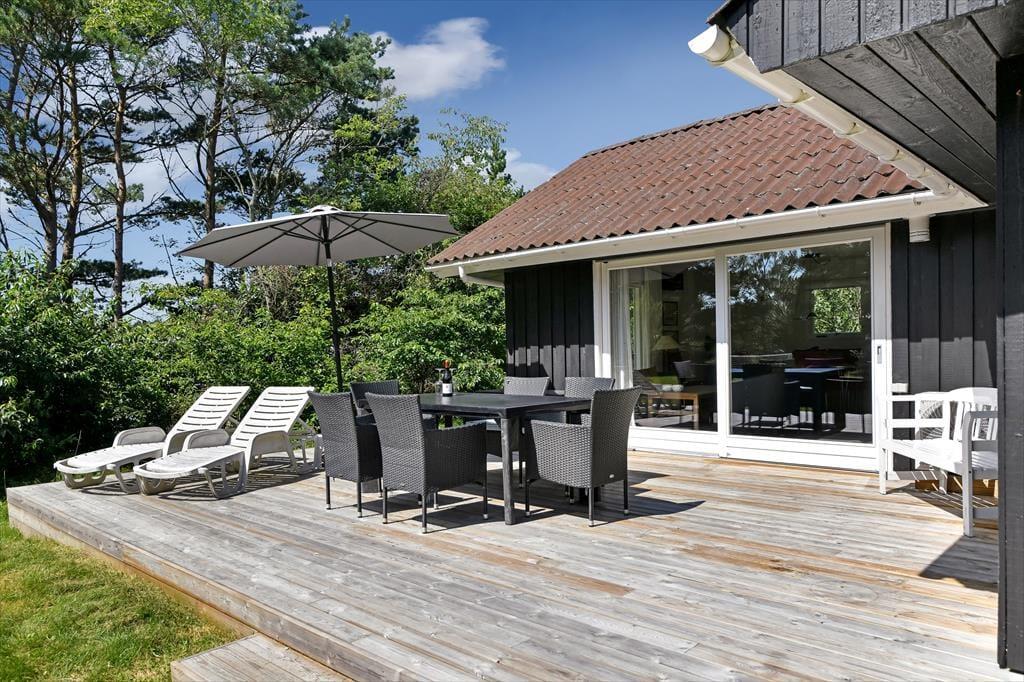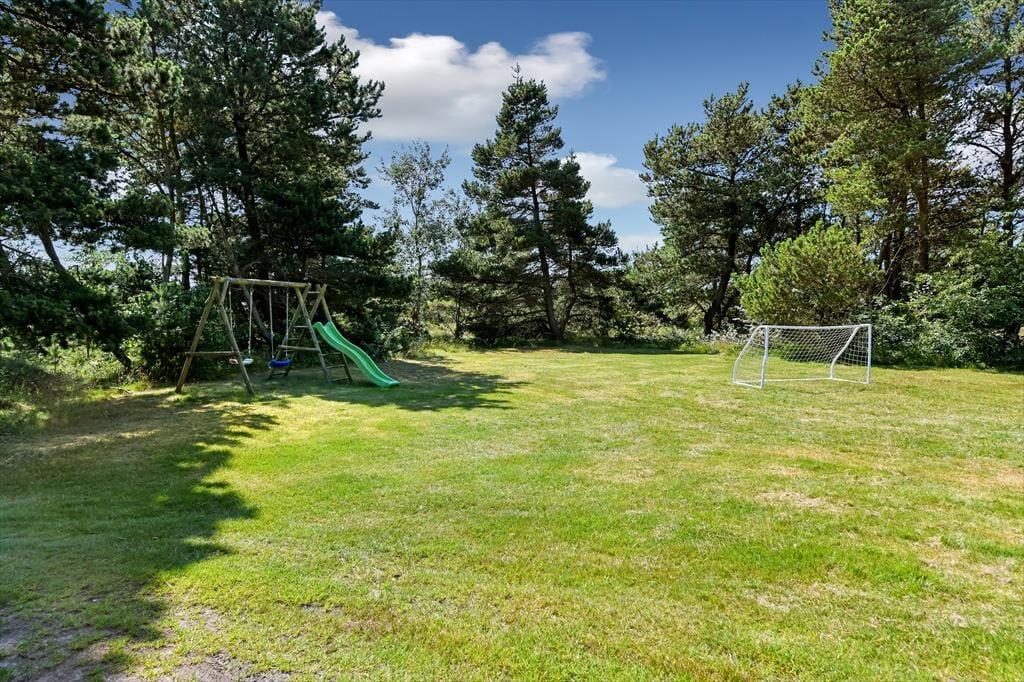 Dieses Feriendomizil liegt gut geschützt auf einem großen Naturgrundstück, so dass du viele entspannte Stunden draußen im Freien verbringen kannst. Vom Wohnzimmer aus erstreckt sich eine schöne Holzterrasse, so dass ihr euer sommerliches Mittagessen unter freiem Himmel einnehmen könnt. Und dank der Süd-West-Ausrichtung findet ihr bis in den Abend hinein ein sonniges Plätzchen zum Grillen. Für ballbegeisterte Kinder gibt es ein Fußballtor auf dem Rasen, und die Jüngeren werden sicher stundenlang Spaß beim Rutschen und Schaukeln haben.