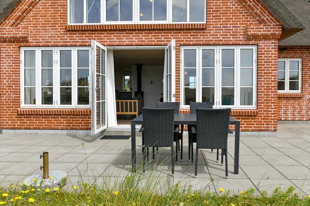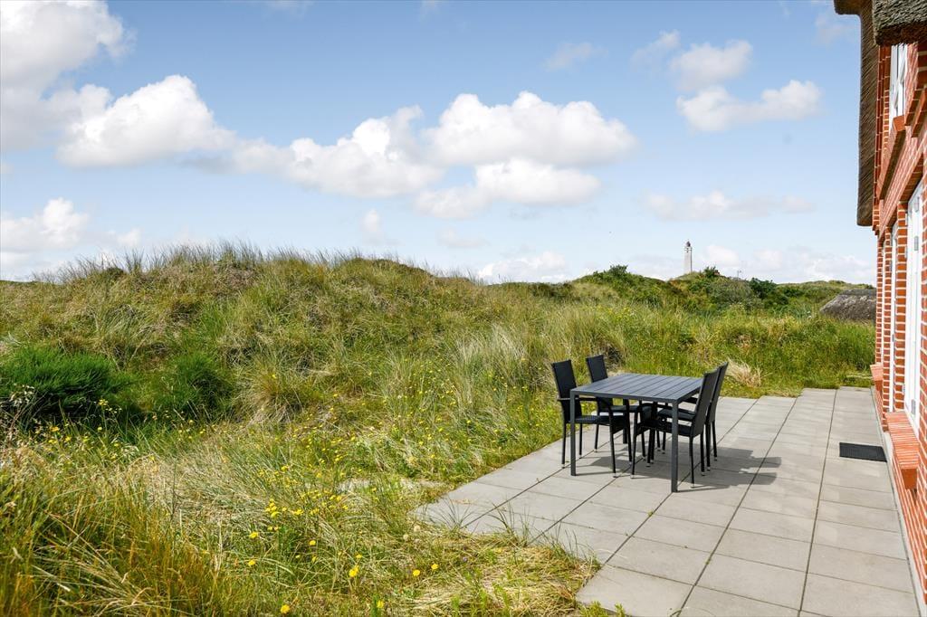 Vom Ferienhaus aus führt eine große Terrasse hinaus ins Freie, wo du die Meeresluft einatmen und den Blick über die sanfte Landschaft schweifen lassen kannst. Hier kannst du den ganzen Tag die Sonne genießen, draußen essen oder einfach in den komfortablen Gartenmöbeln entspannen. Die Dünenlandschaft rund um das Haus lädt zu Spaziergängen, zum Joggen oder einfach zum Sitzen und Gedanken schweifen lassen ein.