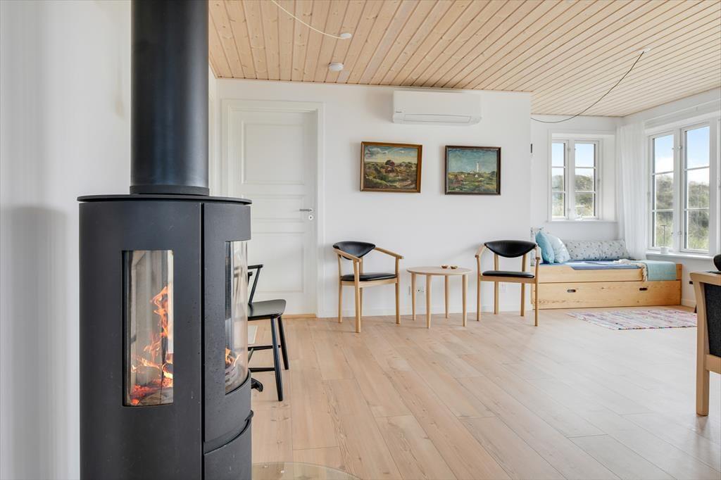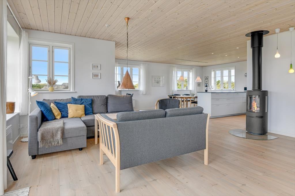 Betritt dieses moderne Ferienhaus, wo Komfort und Ästhetik in perfekter Harmonie vereint sind. Die hellen und geräumigen Wohnbereiche laden zum Entspannen und Wohlfühlen ein. Die stilvolle Einrichtung wird durch die offene Küche und das gemütliche Wohnzimmer unterstrichen, in dem ein Fernseher mit Chromecast installiert ist – ideal für einen Abend mit deinen Lieblingsserien oder Filmen. Nach einem Tag am Strand und in der Natur kannst du vor dem Kamin die Ruhe genießen, der Wärme und Gemütlichkeit in die späten Abendstunden bringt.