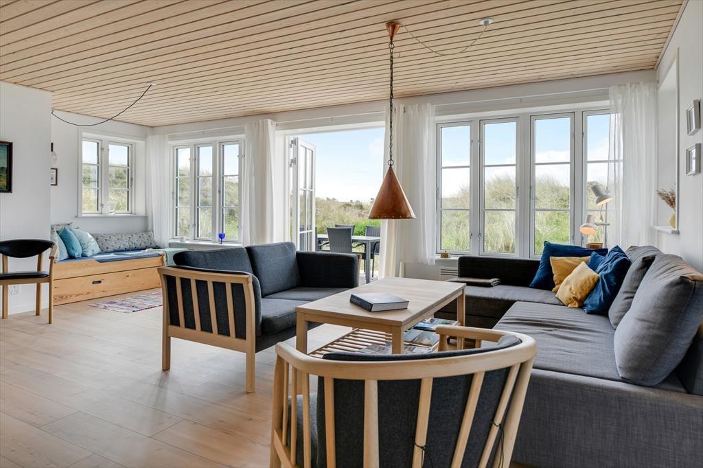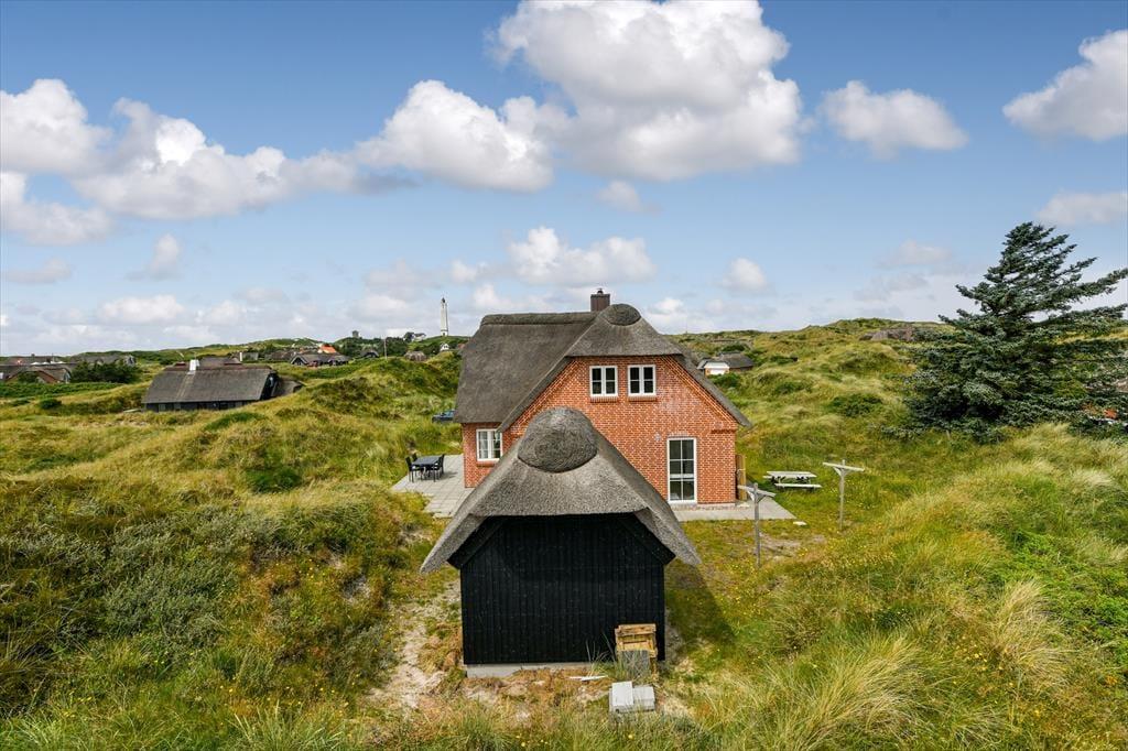 Nur einen Steinwurf vom Nordseestrand entfernt liegt dieses herrliche Ferienhaus in der Fyrvej 84 A, Blåvand. Das Haus thront hoch auf einer Düne, umgeben von einer prächtigen Natur und mit einer einmaligen Aussicht auf den Blåvandshuk Leuchtturm, der sich gegen das rauschende Meer erstreckt.