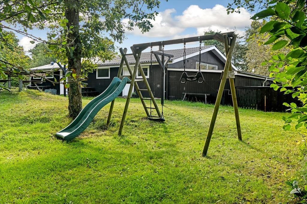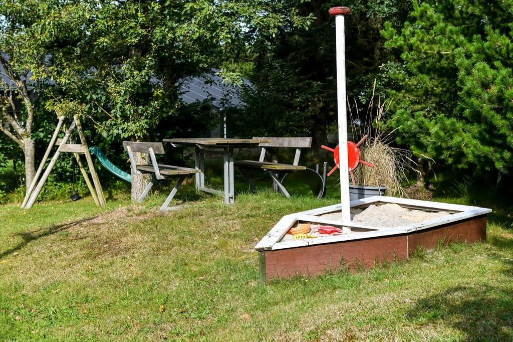 Von der Küche aus trittst du auf eine Ostterrasse, die sich hervorragend für ein Käffchen in der Morgensonne anbietet. In Verlängerung des Wohnraums begrüßt dich eine gen Süden ausgerichtete Terrasse, die in den Sommermonaten schnell zum beliebten Sammelpunkt aller Mitreisenden avancieren wird. Falls du deine Urlaubstage nicht nur in geselliger Runde auf der Terrasse verleben möchtest, kannst du es dir mit einem Liegestuhl auf der Grasfläche gemütlich machen oder mit deinen Kindern vergnügt Frisbee oder Ball spielen. Bei den kleinsten Gästen sorgen eine Rutsche, eine Schaukel und andere Spielgeräte für viel Spaß und Aktivität. Gern werden sie auch in der Sandkiste, die wie ein Boot geformt ist, buddeln und Seefahrer spielen.