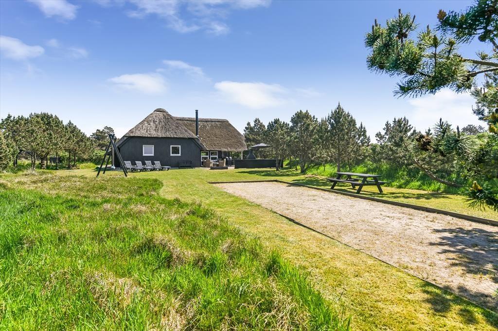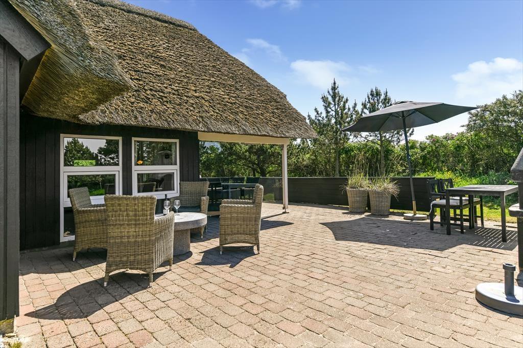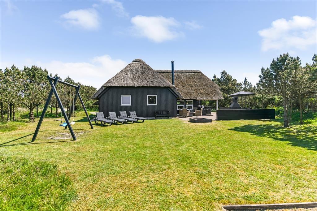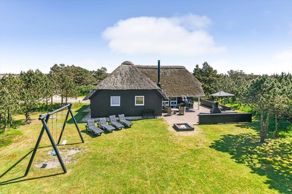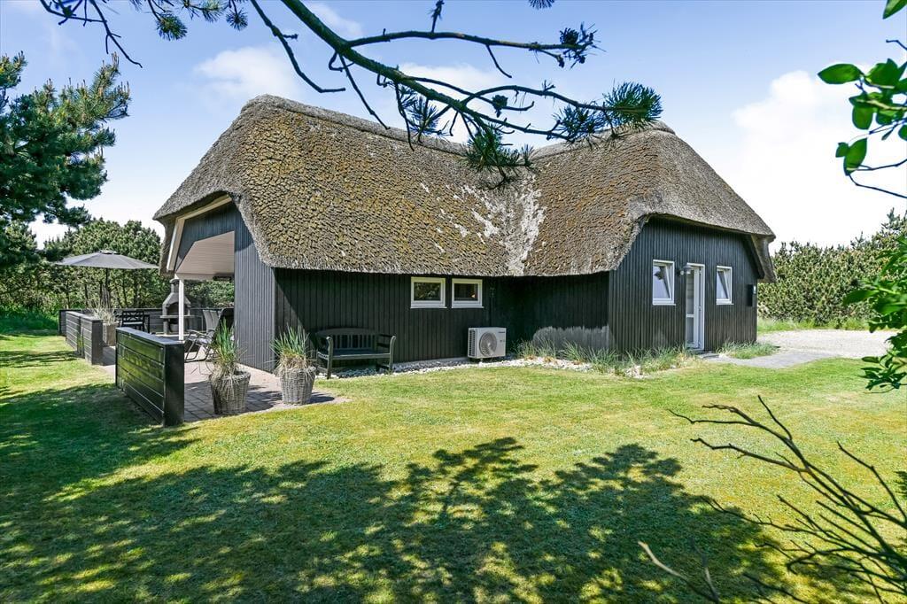 Auf einem großen Naturgrundstück, nur 300 Meter vom Strand entfernt und mit Blick auf den Leuchtturm Blåvandshuk, steht dieses schöne Ferienhaus bereit, dich willkommen zu heißen. Wenn du von modernem Komfort, Whirlpool und Sauna, sonnenbeschienener Gartenidylle und ruhiger Umgebung träumst, ist dieses reetgedeckte Ferienhaus genau das Richtige für dich – und du kannst problemlos Familie oder Freunde einladen, denn es gibt insgesamt Platz für acht Personen im Haus.