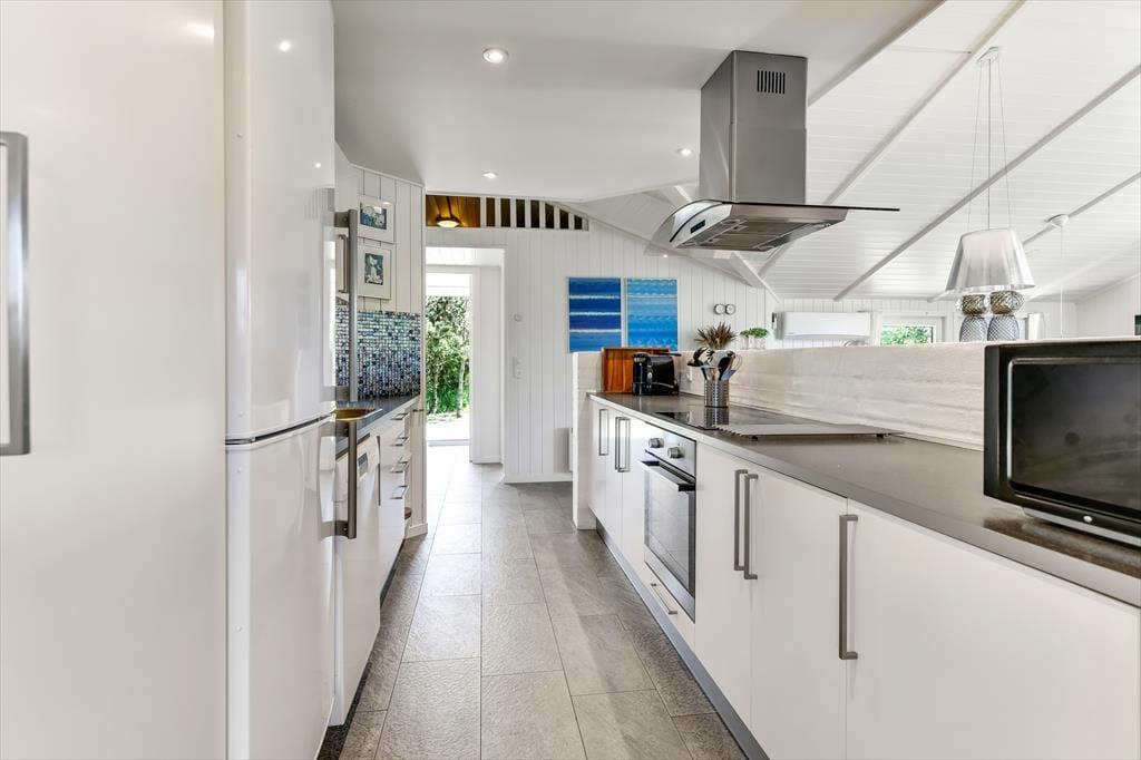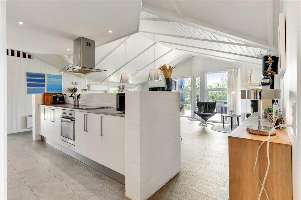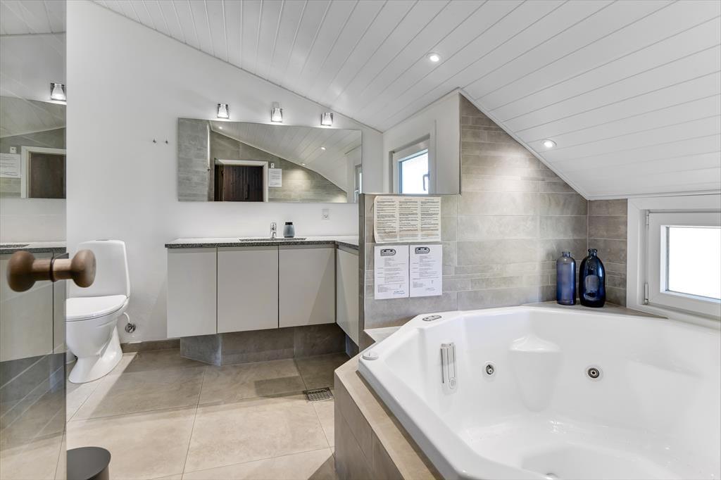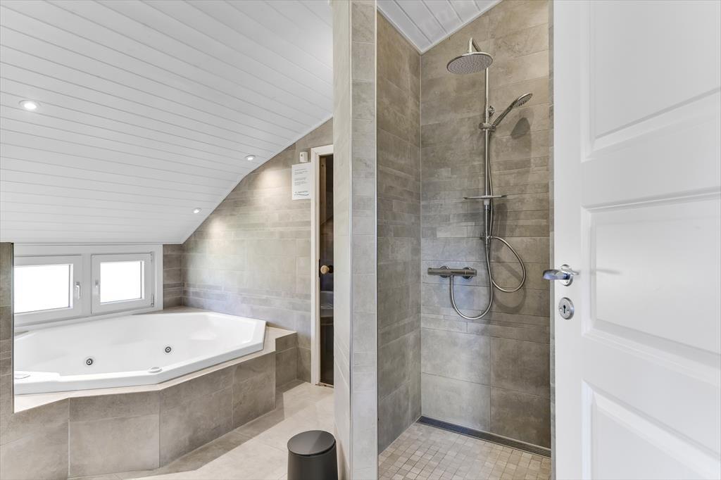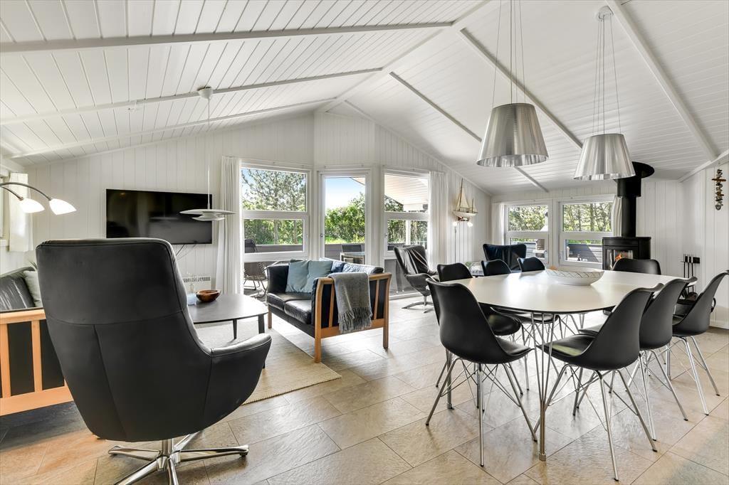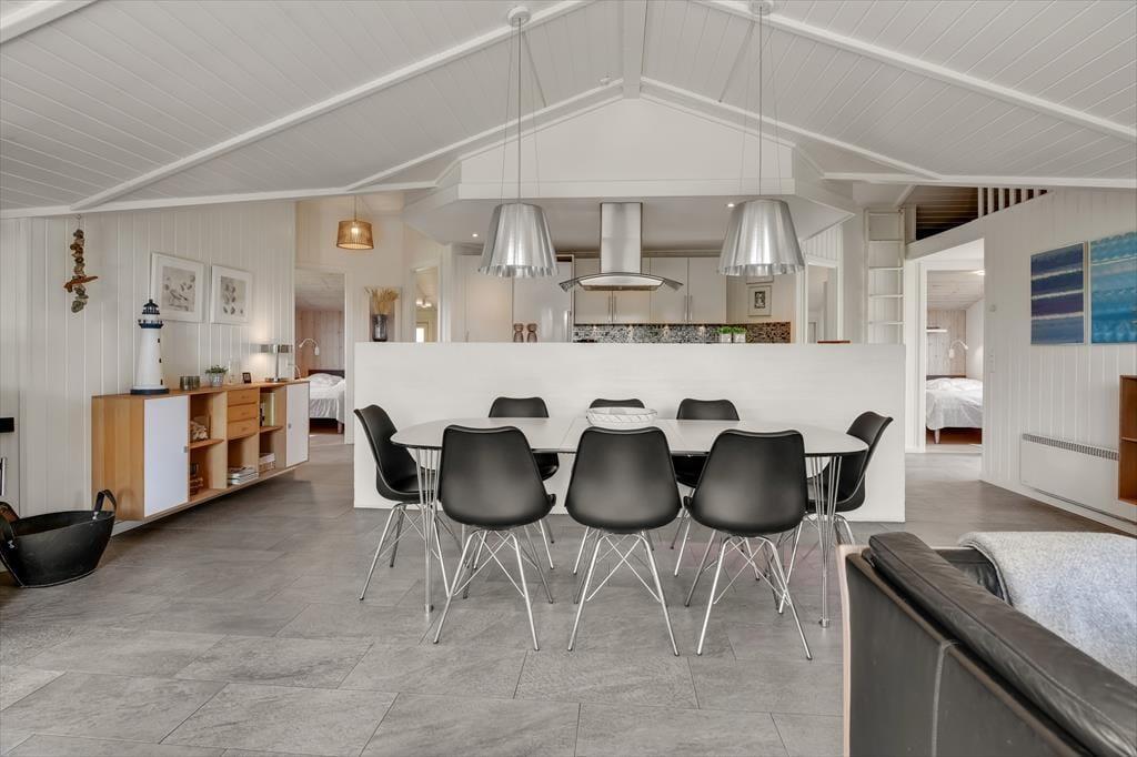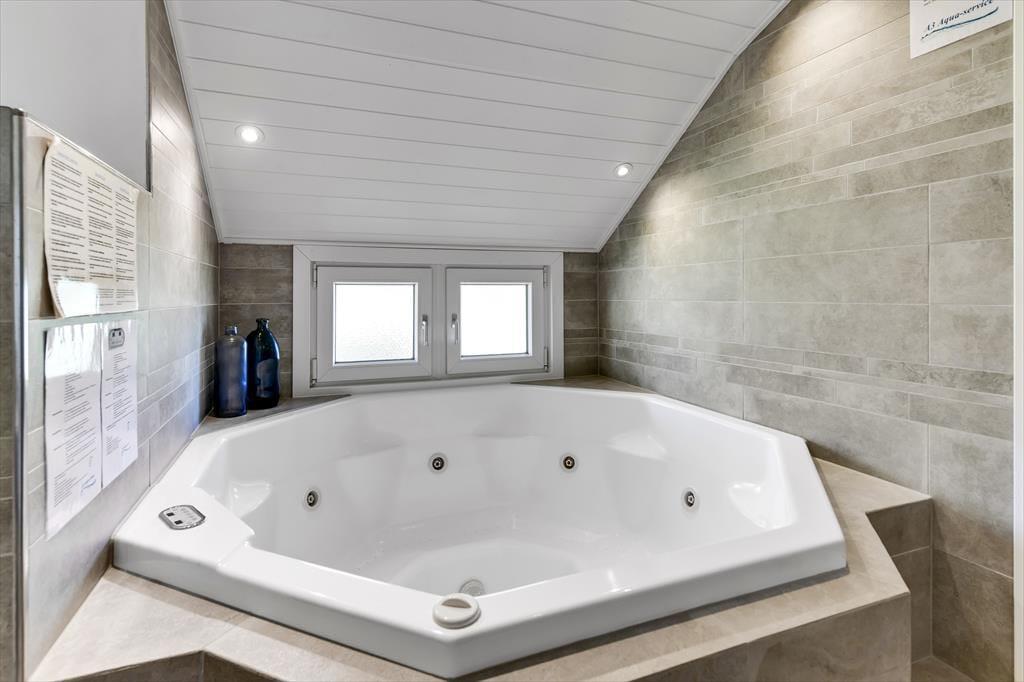Das 115 m² große Ferienhaus hat eine schöne Atmosphäre, die dazu einlädt, den Urlaub in ganz entspanntem Tempo zu genießen. Zwei Familien mit Kindern können hier wunderbar zusammen die Urlaubstage verbringen, denn der Grundriss ist durchdacht, sodass die vier Schlafzimmer und zwei Badezimmer gleichmäßig in zwei komfortable Schlafbereiche aufgeteilt sind. In einem der Badezimmer gibt es sowohl Whirlpool als auch Sauna, sodass du, wenn du in der Stimmung für Wellness und Entspannung bist, hier auf die angenehmste Weise Wärme tanken kannst. Auch das Kochen kann zum reinen Vergnügen werden, wenn es in der gut ausgestatteten Küche des Hauses stattfindet, die Teil des gemütlichen und geräumigen Wohnzimmers ist. Tagsüber fällt viel Licht ein, und an einem kühlen Abend ist es herrlich, den Kamin anzuzünden, bevor ihr euch zu einem leckeren Mahl an den Tisch setzt oder einen Film auf dem großen Flachbildfernseher schaut.