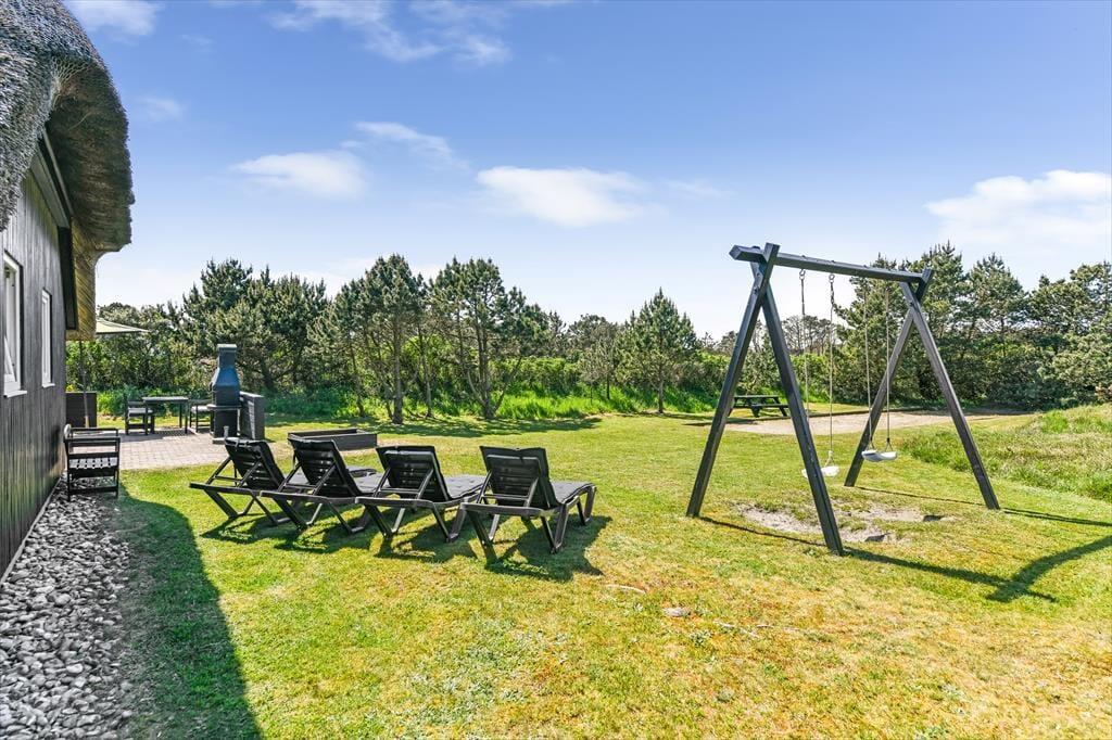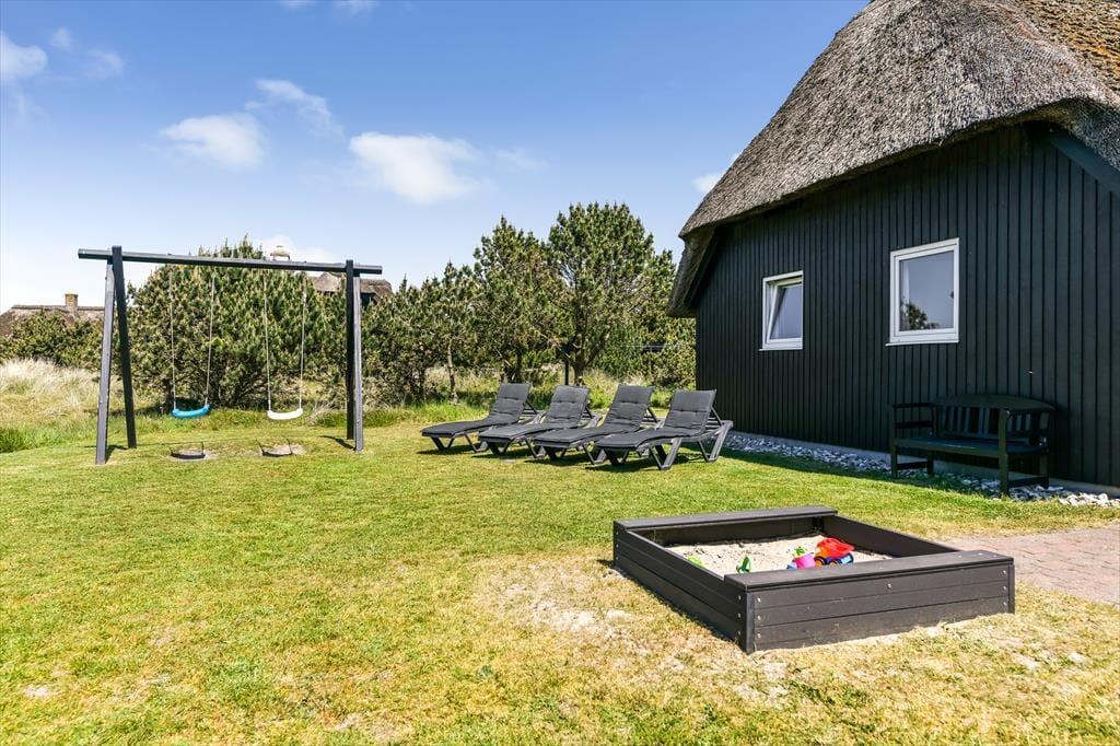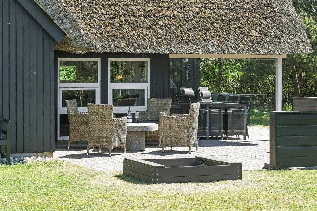 Das große Naturgrundstück ist auf mehreren Seiten gut von Wildrosensträuchern und anderer Bepflanzung abgeschirmt, sodass ihr, egal ob ihr entspannt oder aktiv seid, eine ungestörte Umgebung für das Leben im Freien habt. Für die Kinder gibt es einen Sandkasten und eine Schaukel, und wenn die Erwachsenen auch mitspielen möchten, könnt ihr auf der dafür vorgesehenen Bahn Pétanque spielen. Der Terrassenbereich ist sowohl geräumig als auch sonnig, sodass du tagsüber mehrere schöne Aufenthaltsplätze zur Auswahl hast. Es stehen sowohl ein Grillkamin als auch ein Terrassenheizer zur Verfügung, und beide können dazu beitragen, die hellen Sommerabende noch magischer zu machen.