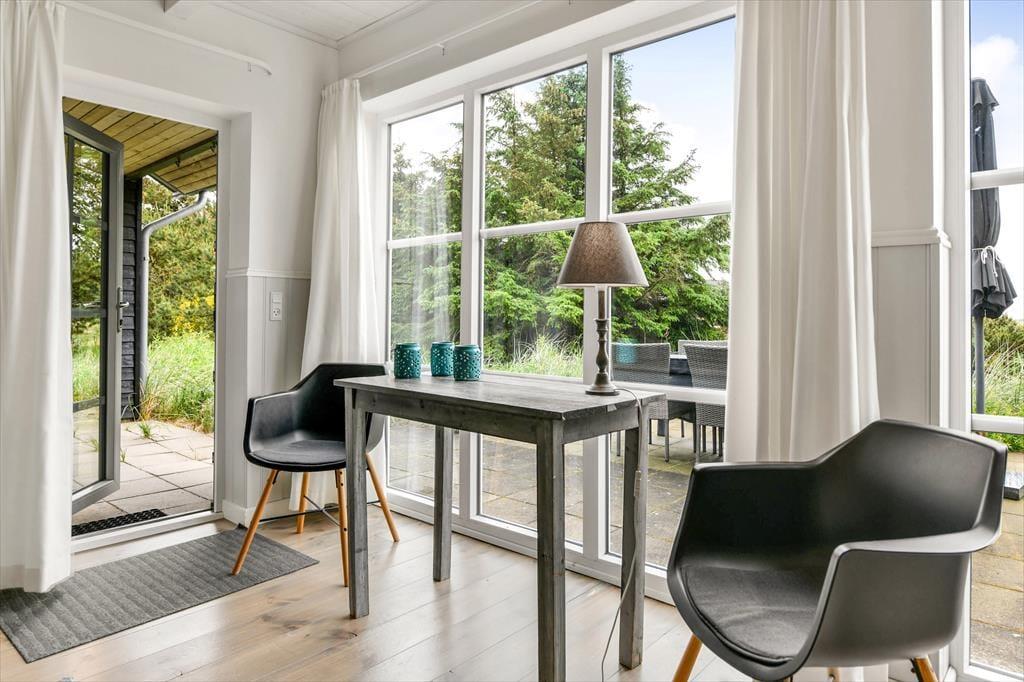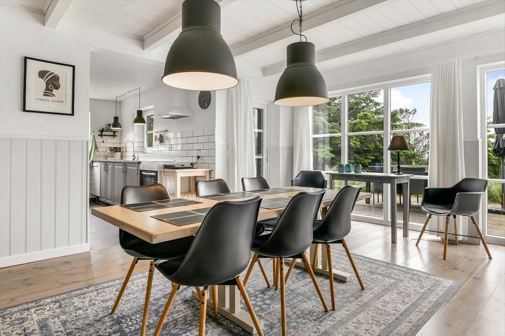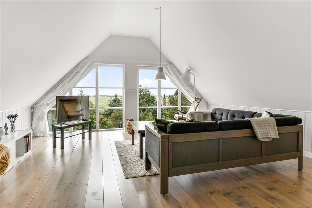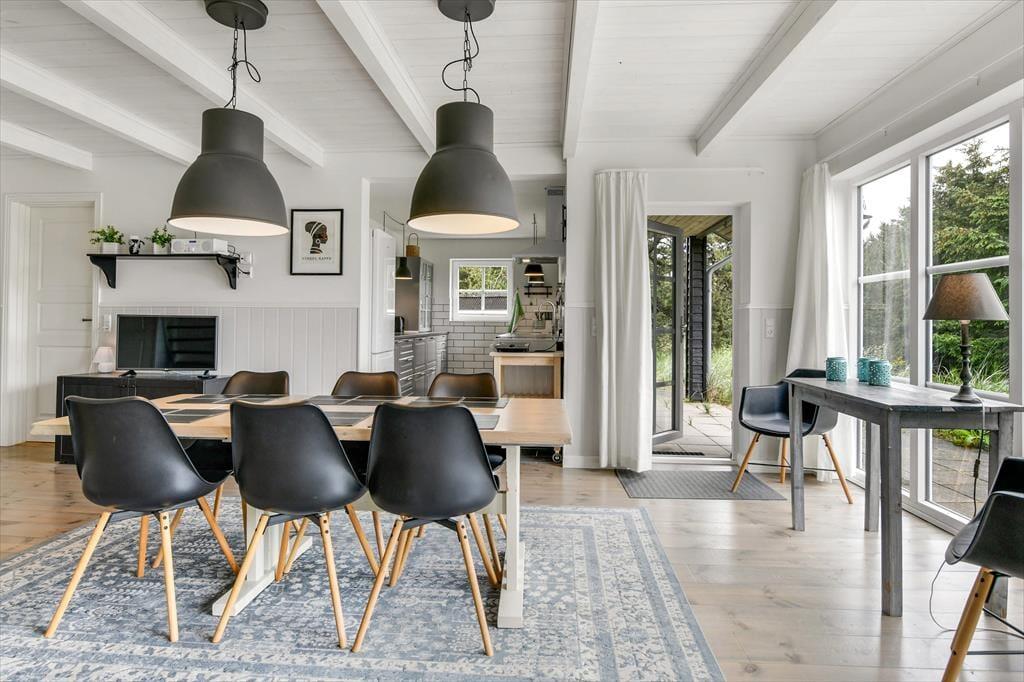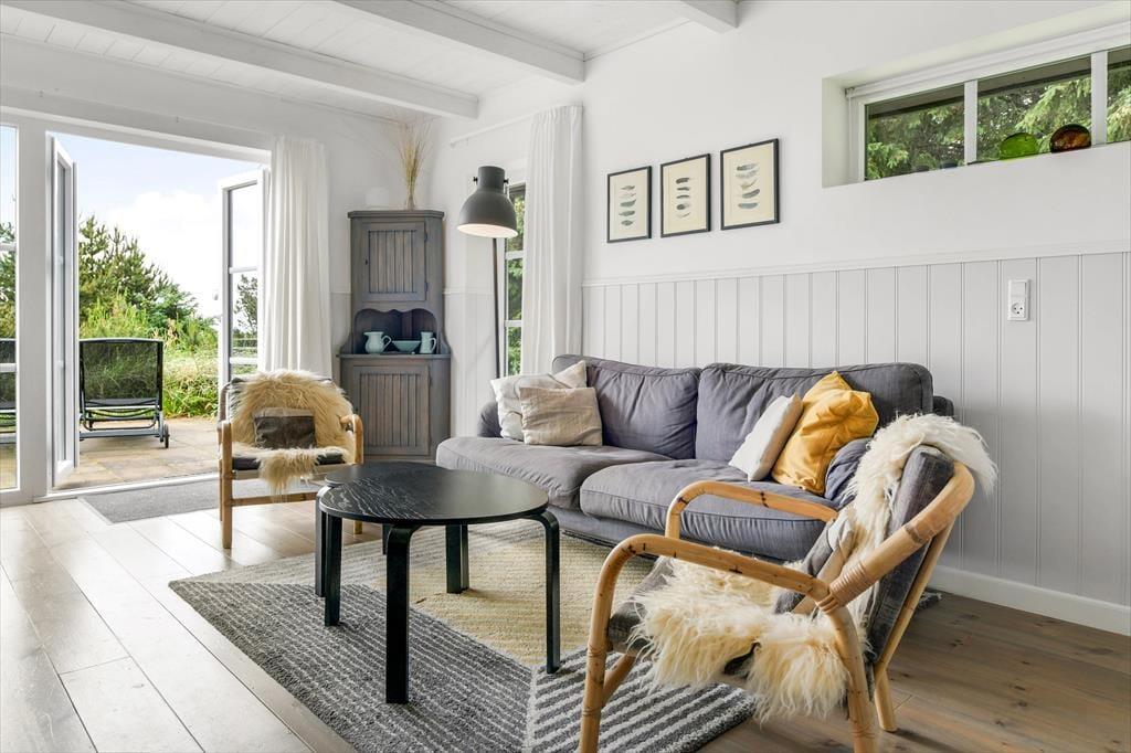Das Ferienhaus in Krogsande 22 strahlt Seele und Charme aus mit seiner schönen Mischung aus Alt und Neu. Das Innere des Hauses bietet helle und einladende Räume, in denen moderne Annehmlichkeiten mit klassischem Sommerhausstil integriert sind. Hohe Decken und sichtbare Balken schaffen eine luftige Atmosphäre, während der Kamin im Wohnzimmer zu gemütlichen Abenden mit knisterndem Feuer einlädt. Die großen Fenster lassen Tageslicht herein und bieten einen fantastischen Blick über die umliegenden Dünen. Die gut ausgestattete Küche lädt zum Experimentieren mit lokalen Zutaten ein, während die komfortablen Schlafzimmer eine erholsame Nachtruhe in friedlicher Umgebung versprechen.