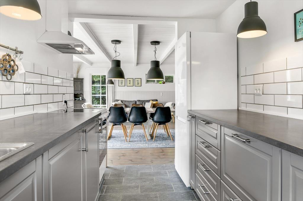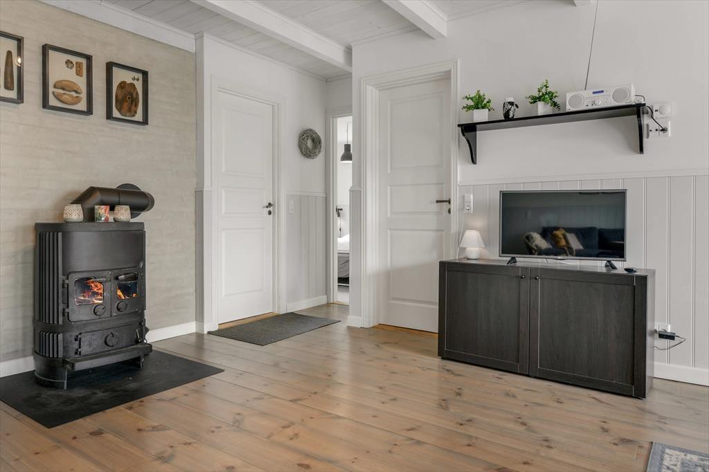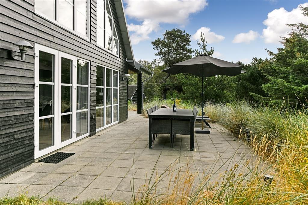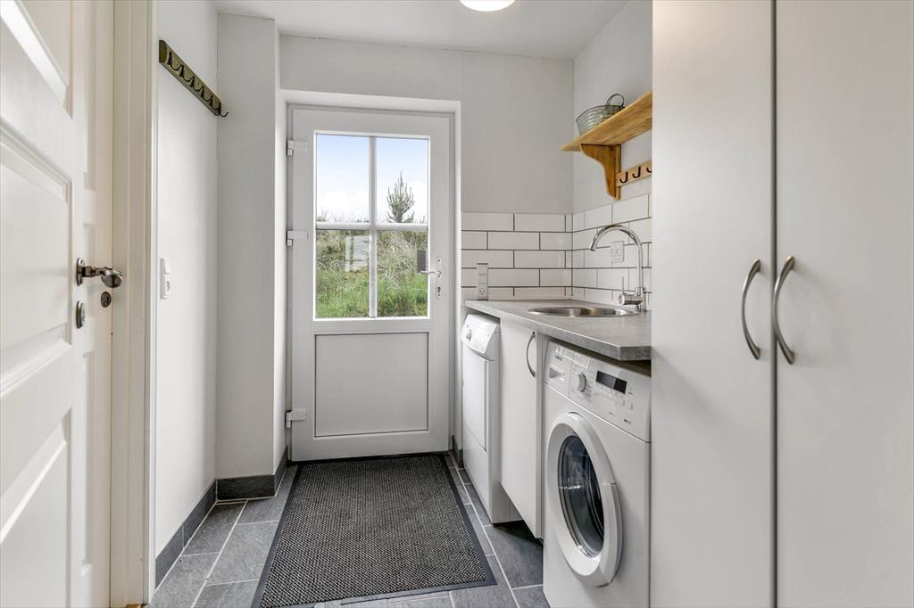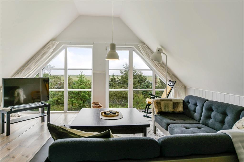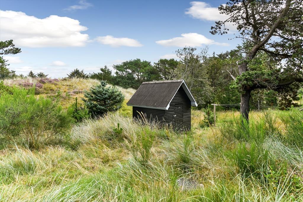 Das Ferienhaus in Krogsande 22 strahlt Seele und Charme aus mit seiner schönen Mischung aus Alt und Neu. Das Innere des Hauses bietet helle und einladende Räume, in denen moderne Annehmlichkeiten mit klassischem Sommerhausstil integriert sind. Hohe Decken und sichtbare Balken schaffen eine luftige Atmosphäre, während der Kamin im Wohnzimmer zu gemütlichen Abenden mit knisterndem Feuer einlädt. Die großen Fenster lassen Tageslicht herein und bieten einen fantastischen Blick über die umliegenden Dünen. Die gut ausgestattete Küche lädt zum Experimentieren mit lokalen Zutaten ein, während die komfortablen Schlafzimmer eine erholsame Nachtruhe in friedlicher Umgebung versprechen.