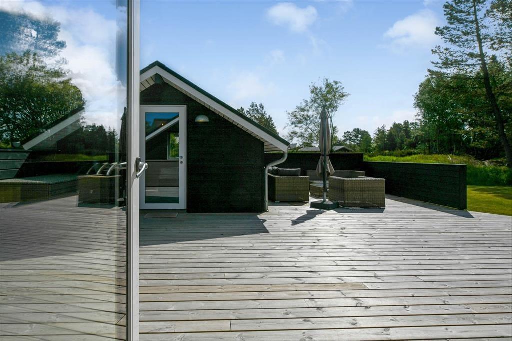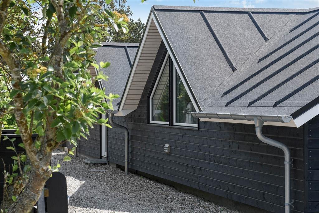 Draußen erwartet dich eine große und schöne überdachte Terrasse, die in den warmen Monaten fast wie ein zusätzliches Wohnzimmer fungiert. Hier kannst du geschützt vor Wind und Wetter ein gutes Essen oder eine Tasse Kaffee an der frischen Luft genießen. Die Terrasse ist mit modernen Gartenmöbeln ausgestattet, sodass du die Möglichkeit hast, dich zu entspannen und den Urlaub in vollen Zügen zu genießen. Der Garten rund um das Ferienhaus ist eine schöne Oase mit Platz zum Spielen und Entspannen. Hier können die Kinder sich austoben, während du dich zurücklehnst und die friedliche Atmosphäre genießt.