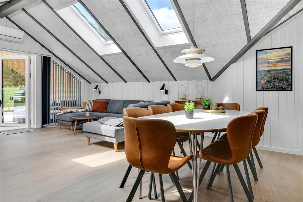 Das Ferienhaus in der Toldbodvej 3 empfängt dich mit einem hellen und einladenden Interieur. Hier erwartet dich eine tolle Küche, die perfekt zum Kochen und für gemütliche Stunden mit der Familie geeignet ist. Die schönen Badezimmer strahlen Luxus und Komfort aus, sodass du nach einem erlebnisreichen Tag eine entspannende Dusche genießen kannst. Das Wohnzimmer ist geräumig und gemütlich, und die große Sofaecke lädt zum Entspannen vor dem Fernseher oder mit einem guten Buch ein. Die Schlafzimmer des Hauses sind komfortabel und geschmackvoll eingerichtet, und als zusätzlichen Bonus gibt es ein charmantes Nebengebäude mit Doppelbett, das Platz für Freunde und Familie bietet.