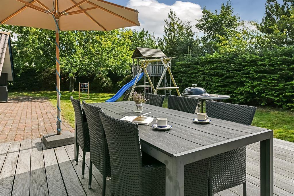 Draußen erwartet dich ein gepflegter Garten, der die Möglichkeit bietet, die langen, hellen Sommerabende zu genießen. Die sonnige Terrasse ist perfekt, um deinen Morgenkaffee oder ein leichtes Mittagessen unter freiem Himmel zu genießen, während die ruhige Lage eine entspannende Atmosphäre garantiert. Hier kannst du auch eine kleine Pause vom Strandleben einlegen und den ruhigen, privaten Außenbereich genießen. Mit einer Lage in der Nähe der wunderschönen Strände von Blåvand kannst du schnell zur Küste gelangen, um ein Bad zu nehmen oder einen entspannten Tag in der Sonne zu verbringen.