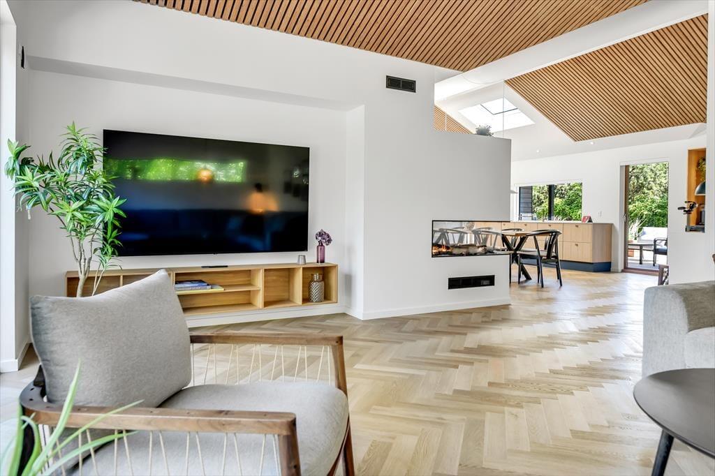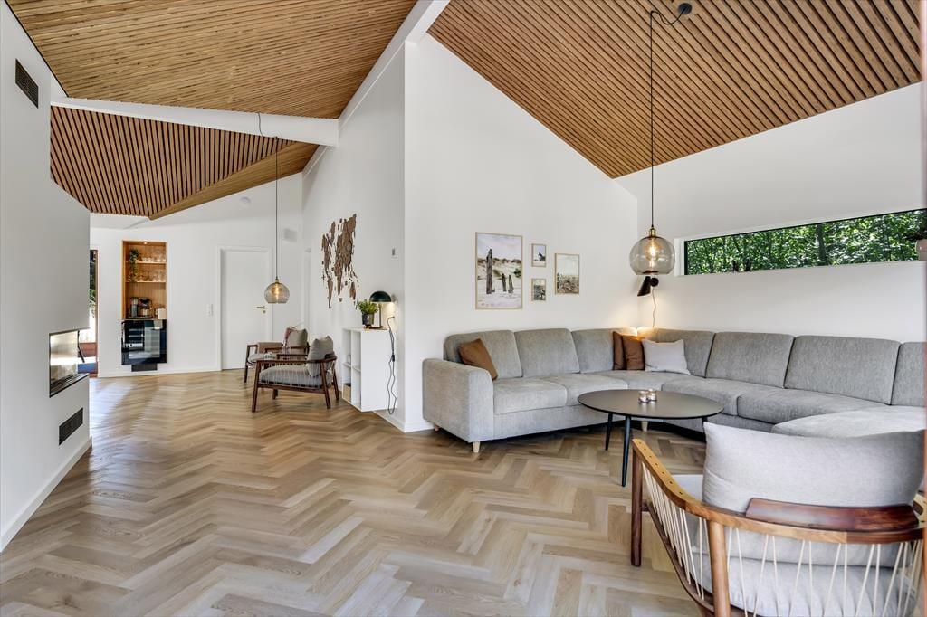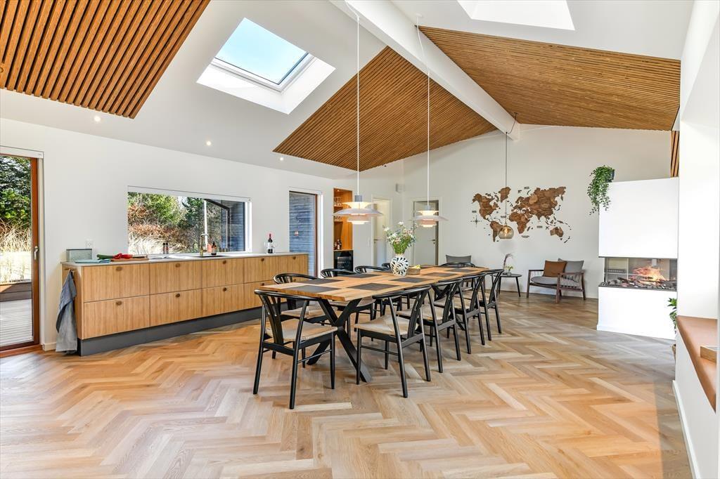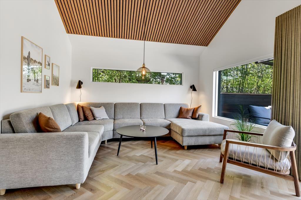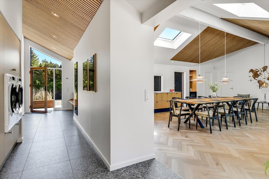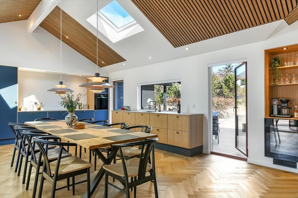 Wenn ihr das Ferienhaus in Lyngsletten 31 betretet, werdet ihr von einer modernen und stilvollen Einrichtung empfangen, bei der jedes Detail durchdacht ist. Die Atmosphäre ist entspannt und einladend – ideal, um die Seele baumeln zu lassen und einfach zu genießen. Große Fensterfronten lassen viel Licht herein und schaffen ein harmonisches Zusammenspiel zwischen drinnen und draußen. In dem offenen Wohnbereich verschmelzen Küche, Essplatz und Wohnzimmer miteinander, sodass die ganze Familie zusammen sein kann, egal ob beim Kochen, Lesen oder gemütlichen Beisammensein auf dem Sofa. Die Einrichtung strahlt modernes Ferienleben aus, in dem Komfort und Ästhetik Hand in Hand gehen. Ihr werdet schnell merken, dass das Haus alles bietet, was man sich für einen entspannten Urlaub wünschen kann.