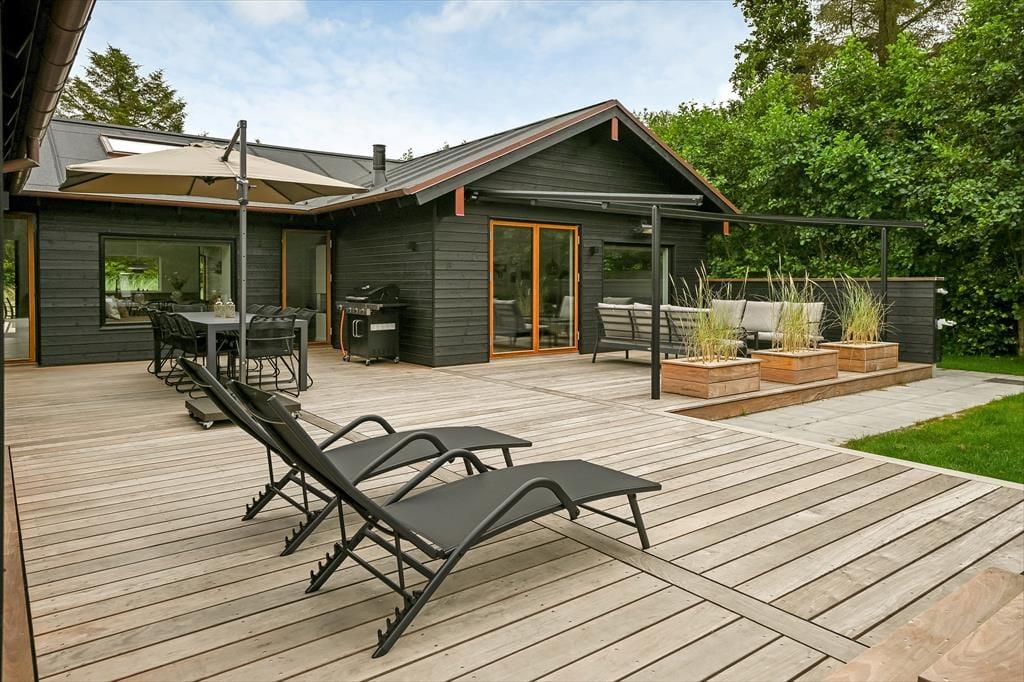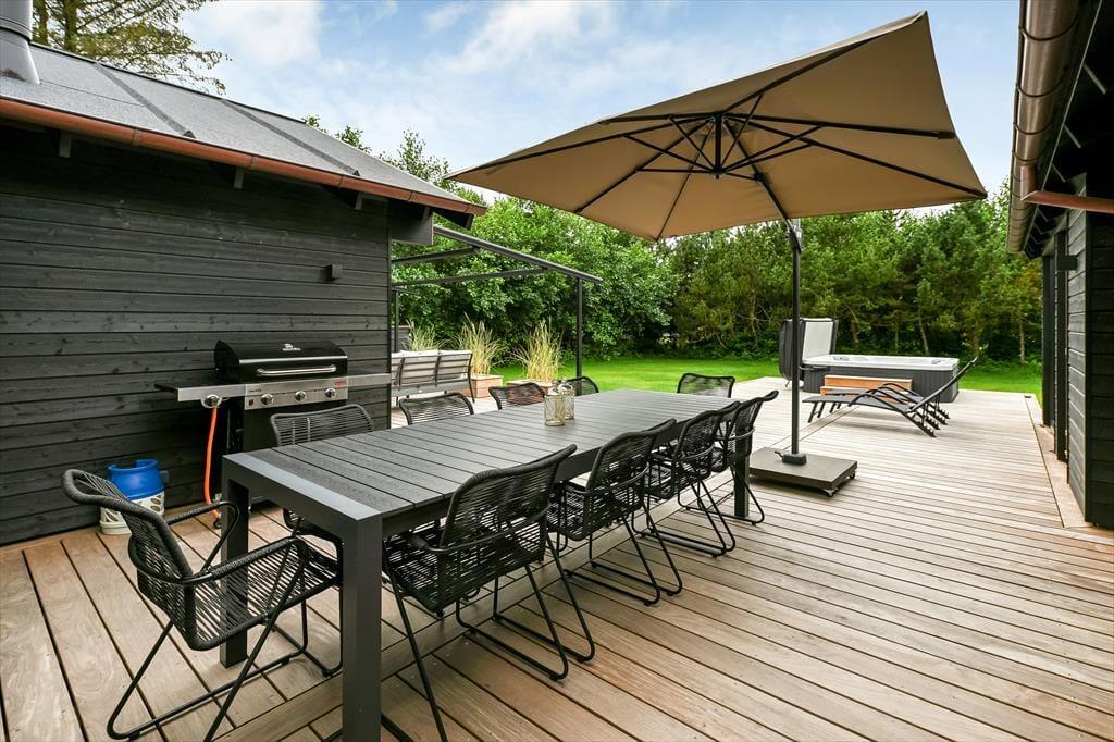 Das private Grundstück ermöglicht es euch, in Ruhe und Abgeschiedenheit zu entspannen – selbst mitten in der Stadt. Während die Kinder sicher auf der Wiese spielen, könnt ihr auf der Terrasse euren Morgenkaffee in der Sonne genießen oder euch am Abend zu einem gemütlichen Grillabend versammeln. Das Leben im Freien wird ganz selbstverständlich Teil eures Urlaubs, sei es am Esstisch auf der Terrasse oder auf einer Decke mit Sonnenhut und Kreuzworträtsel in der Hand. Die Abende lassen sich wunderbar unter der großen Markisen-Pergola verlängern. Die Privatsphäre auf dem Grundstück sorgt für eine besondere Ruhe, die mitten in Blåvand sonst schwer zu finden ist – so könnt ihr euch jederzeit zurückziehen, auch wenn die Ferienstadt direkt vor der Tür pulsiert.