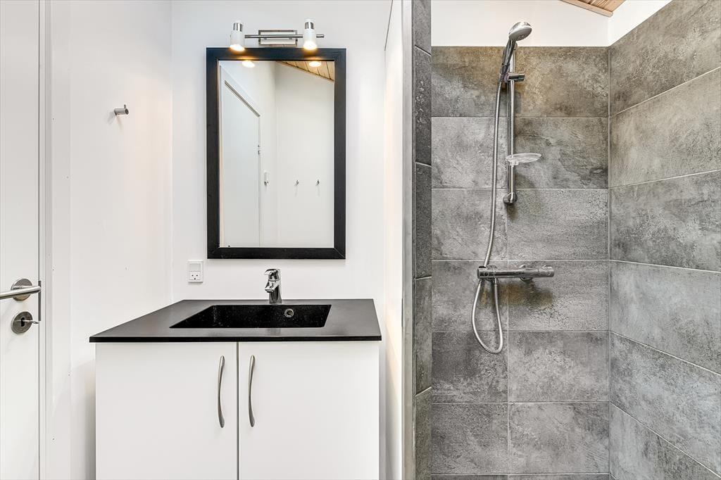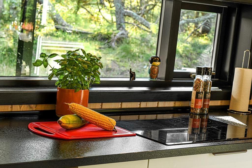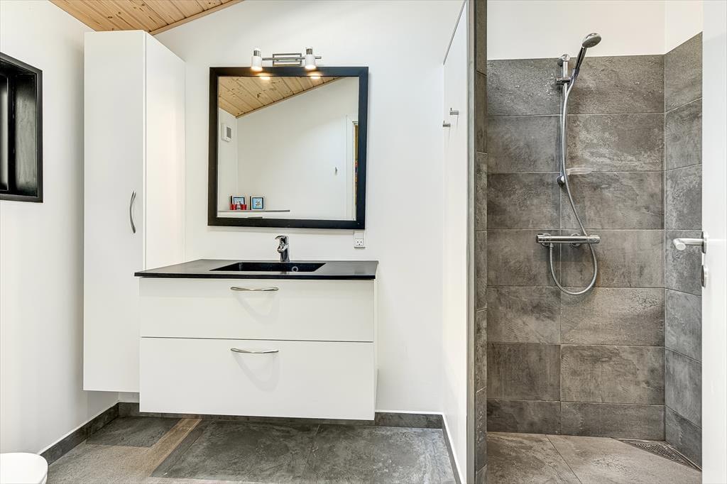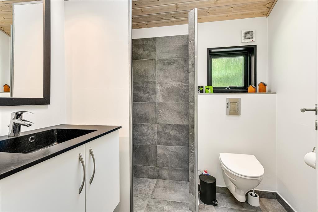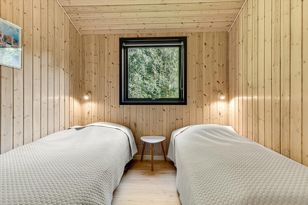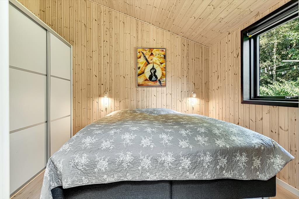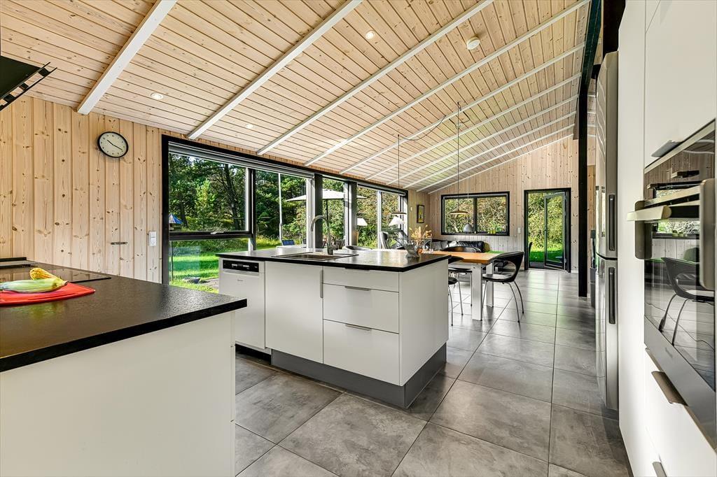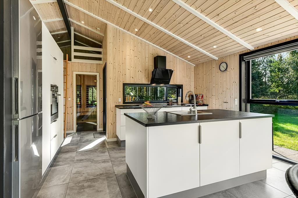 Wenn du dieses schöne Ferienhaus betrittst, wirst du sofort die offene und helle Atmosphäre bemerken. Die große, offen gestaltete Küche, die mit dem Wohnzimmer verbunden ist, ist mit modernen Qualitätsmaterialien eingerichtet, die sowohl zu kulinarischen Erlebnissen als auch zu gemütlichem Beisammensein einladen. Hier kannst du köstliche Mahlzeiten zubereiten, während du dennoch Teil des Gemeinschaftsraums im Wohnzimmer bist. Das gemütliche Wohnzimmer mit seinem stilvollen Design vermittelt ein Gefühl von heimeliger Behaglichkeit, besonders wenn du den Kamin anzündest und die warmen Flammen genießt. Ein zusätzliches Highlight erwartet dich in der Infrarotsauna des Hauses, die perfekt zur Entspannung nach einem Tag in der Natur geeignet ist. Das Haus bietet auch mehrere schöne Schlafzimmer.