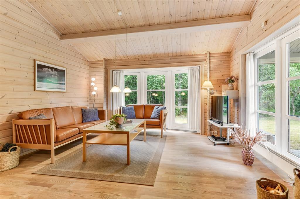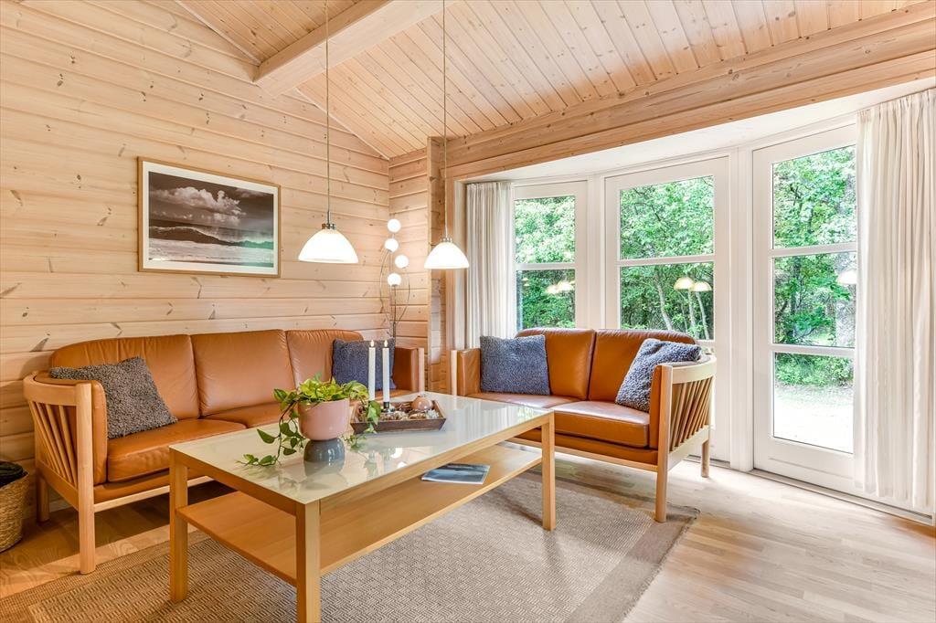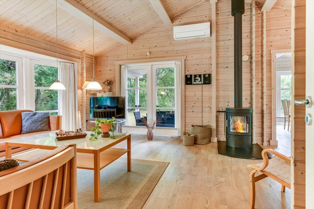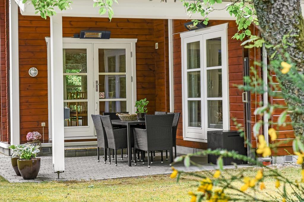 Im Urlaub hier steht das Leben im Freien ganz klar im Mittelpunkt. Das Ferienhaus liegt auf einem privaten Naturgrundstück, umgeben von hohen Bäumen und dichter Bepflanzung, die für Windschutz und Privatsphäre sorgen – so kannst du die Ruhe der Natur in vollen Zügen genießen. Die nach Süden ausgerichtete Terrasse ist teilweise überdacht, sodass du auch bei leichtem Regen draußen sitzen kannst – mit einer Tasse Kaffee am Morgen oder einem Glas Wein zum Sonnenuntergang. Hier ist genug Platz für Garten- und Ballspiele, Sonnenbäder oder gesellige Grillabende. Und wenn die Dunkelheit hereinbricht, zündest du einfach ein paar Laternen an und genießt die nächtliche Stille, die sich über den Garten legt.