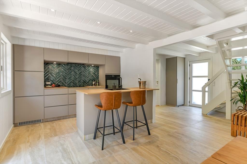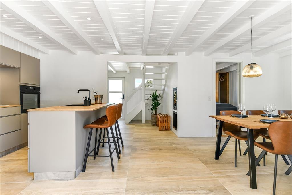 Innen ist das Ferienhaus mit Fokus auf Licht und Raumgestaltung eingerichtet. Der moderne Stil verleiht dem Haus eine frische und einladende Atmosphäre, in der du dich in den gut eingerichteten Wohnzimmern und der Küche entspannen kannst. Der Kaminofen trägt zur Gemütlichkeit bei, besonders an kühleren Tagen, während die großen Fenster für viel natürliches Licht und einen schönen Blick auf die Natur draußen sorgen. Das Haus ist perfekt zum Entspannen nach einem Tag voller Aktivitäten. Es ist ein idealer Ort für Familien und Gruppen, die zusammen in schöner Umgebung Zeit verbringen möchten.