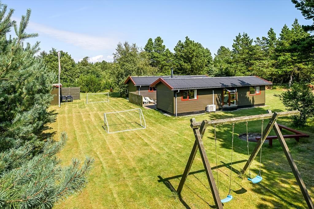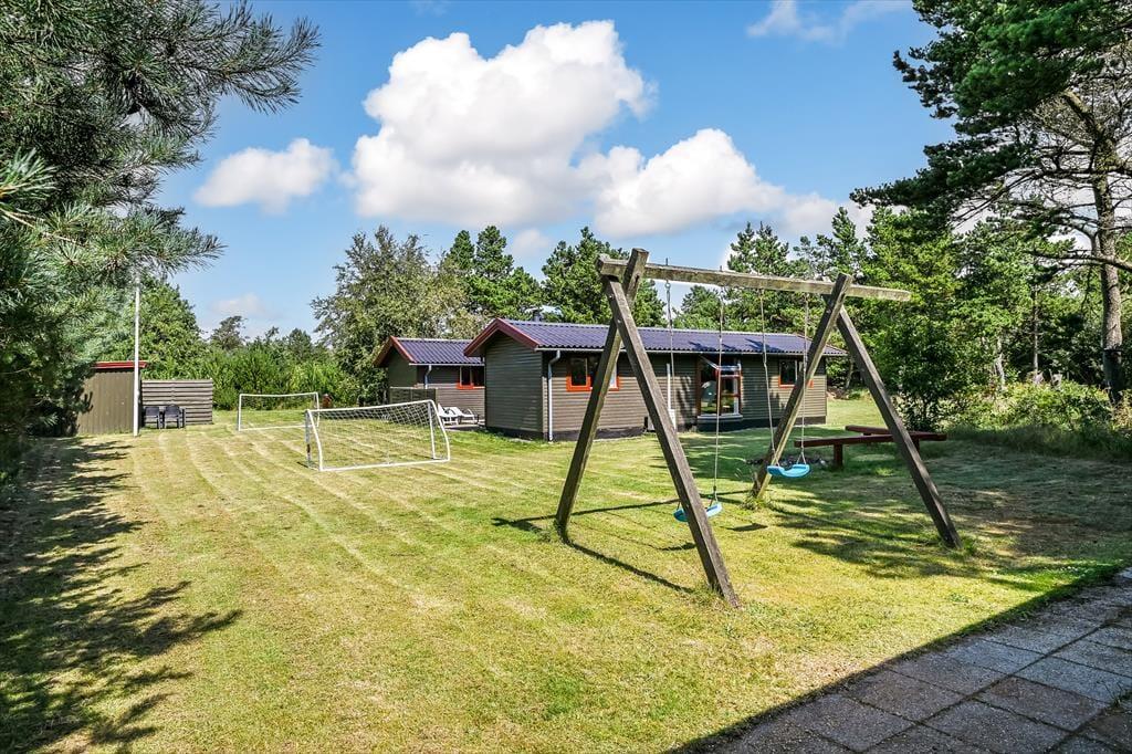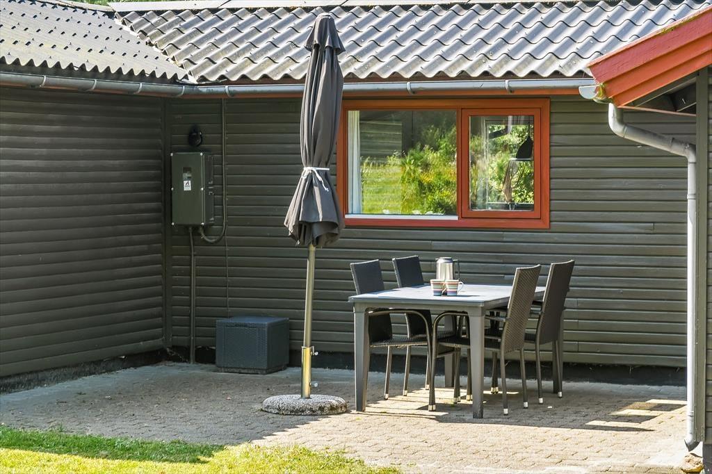 Das Ferienhaus liegt auf einem schönen, privaten Grundstück, auf dem du das Leben ganz ungestört genießen kannst. Die große Rasenfläche lädt zu Spiel und Spaß ein – sei es eine Partie Krocket, Wikingerspiel oder einfach eine gute alte Fangrunde. Es gibt außerdem Platz, um sich in der Sonne mit einem kühlen Getränk zu entspannen oder im Schatten ein gutes Buch zu lesen. Die Terrasse ist perfekt für lange, warme Sommerabende, an denen der Grill angezündet und die Mahlzeiten unter freiem Himmel genossen werden können. Hier ist Platz für Lebendigkeit und Entspannung – ganz so, wie es die Urlaubsstimmung verlangt.
